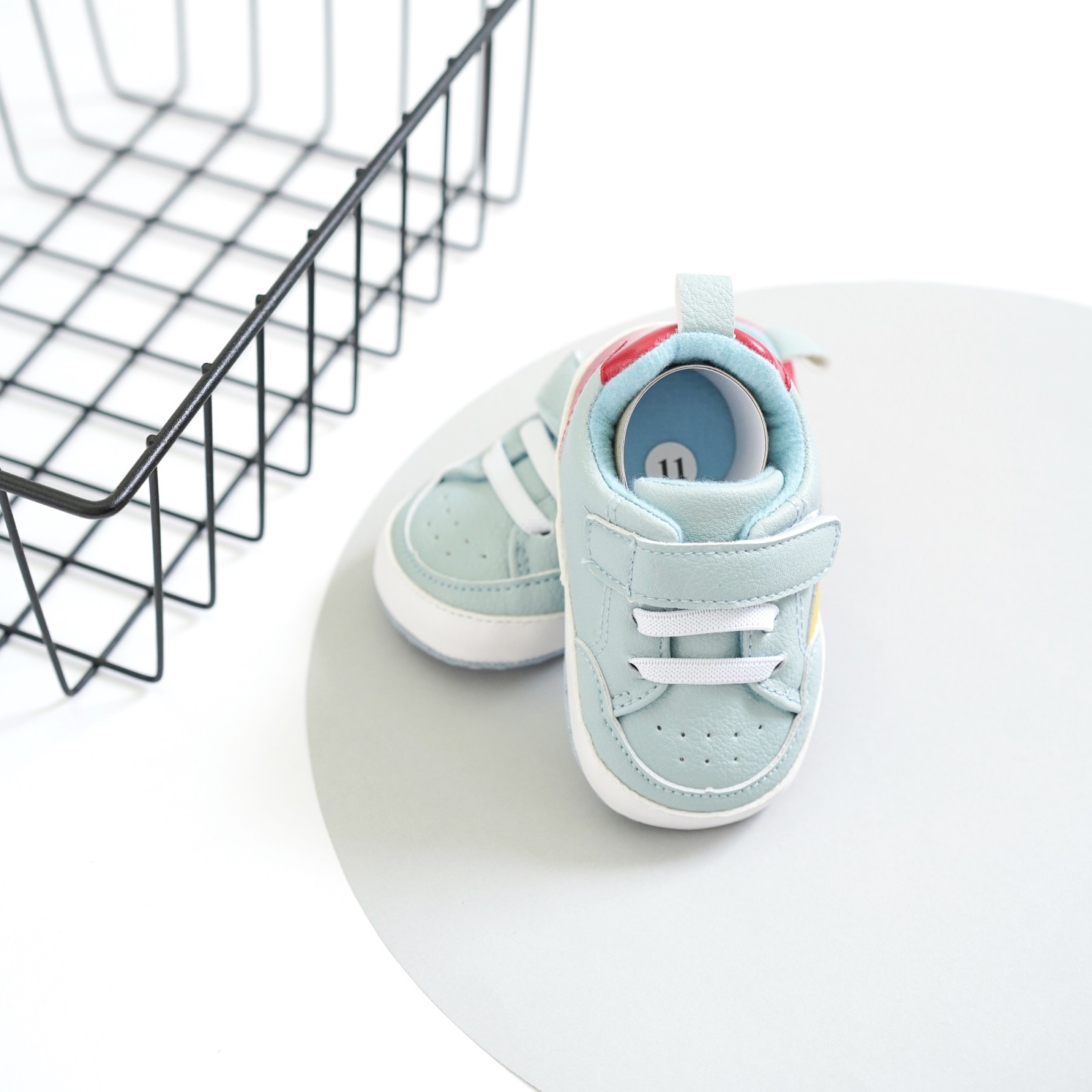 Кроссовки. 11 см. ЦВЕТ - нежная бирюза с красным и желтым