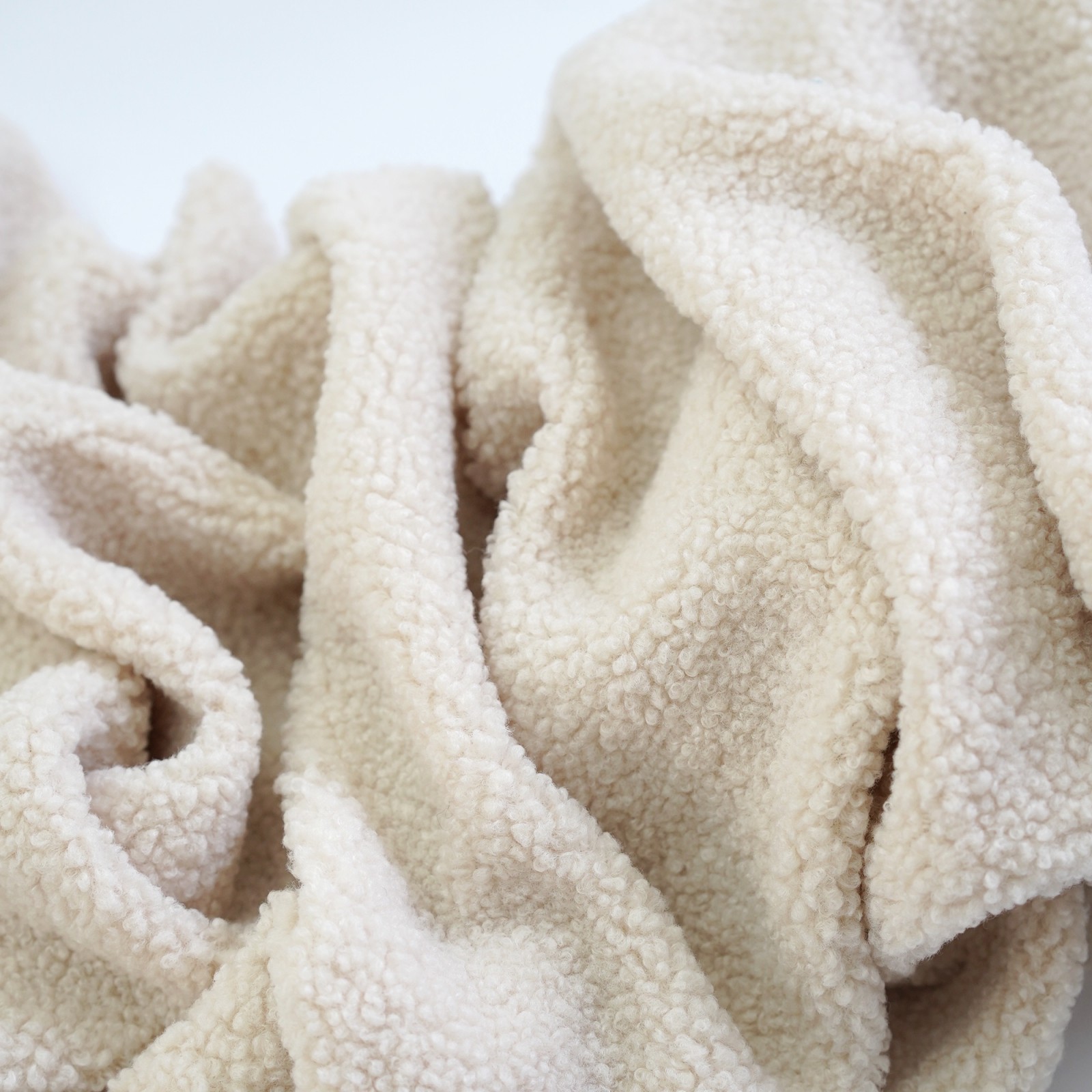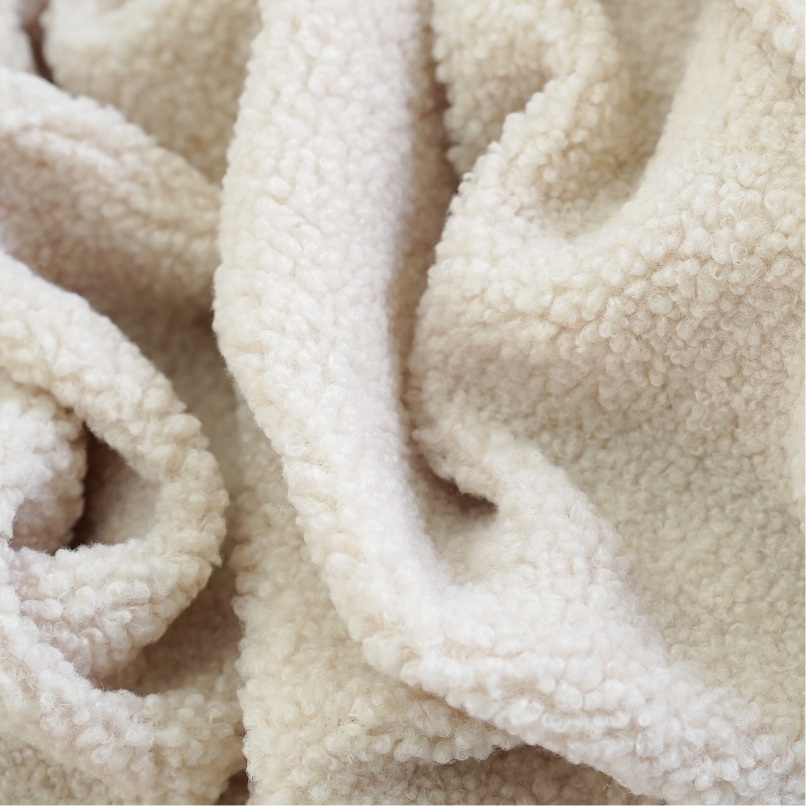 Мягкая ворсистая ткань с объемными «буклированными» ворсинками. Ткань по структуре и виду напоминает мех букле, но более объемный о плотный