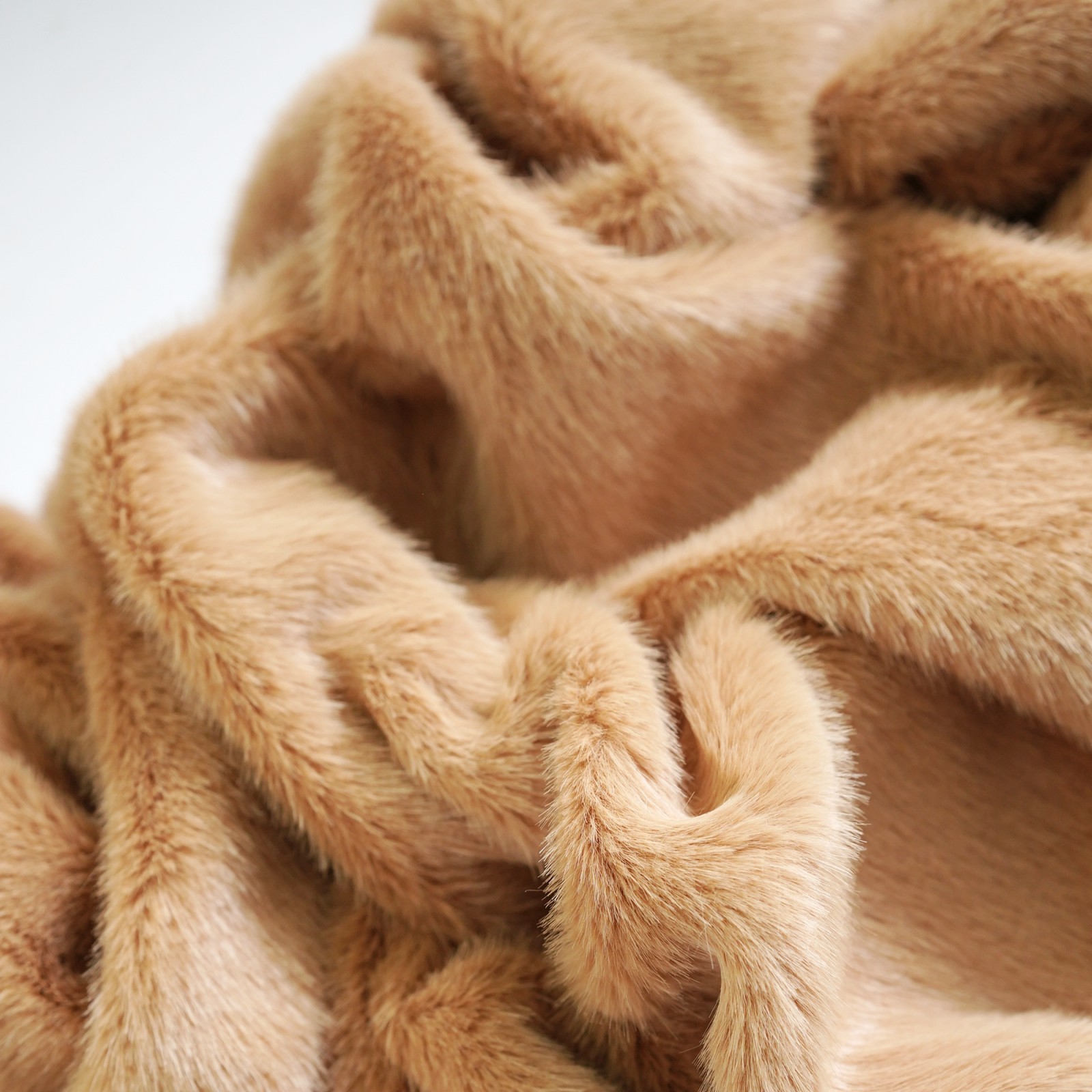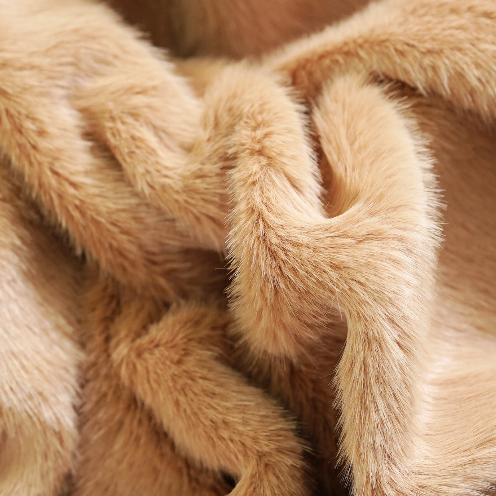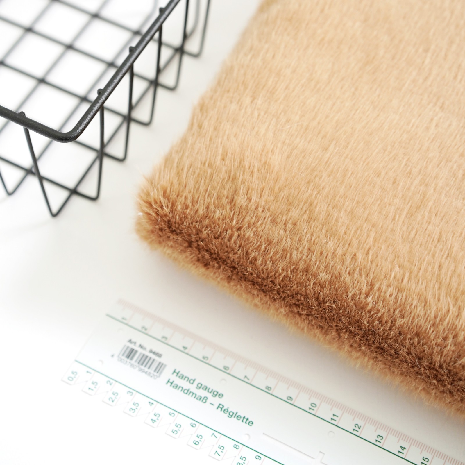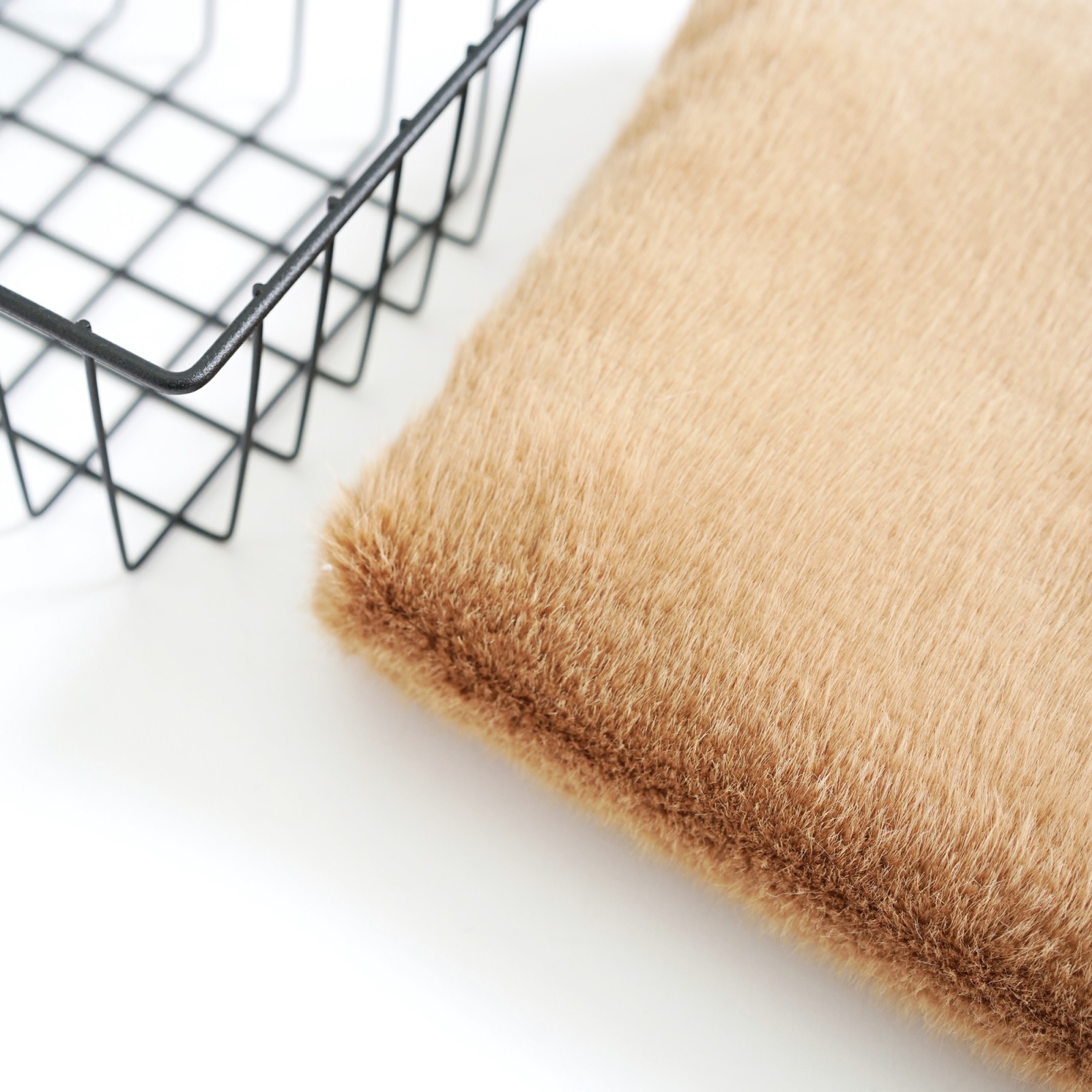 Плотный густо набитый мех. С разной длиной ворса (есть подшорсток и осевая волосинка). Объемный текстильный материал на мягкой трикотажной основе, растяжим не значительно