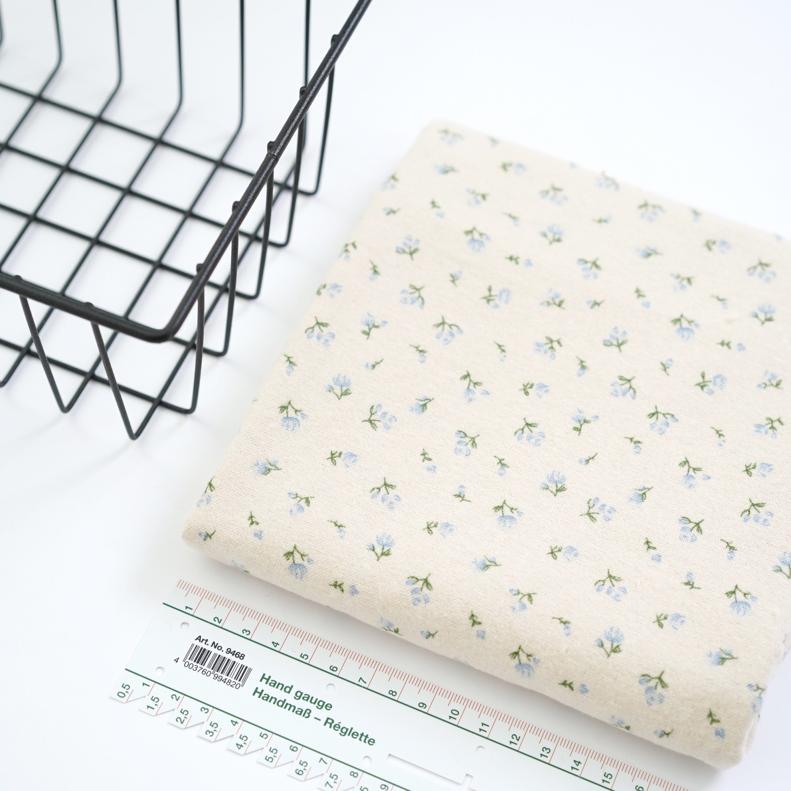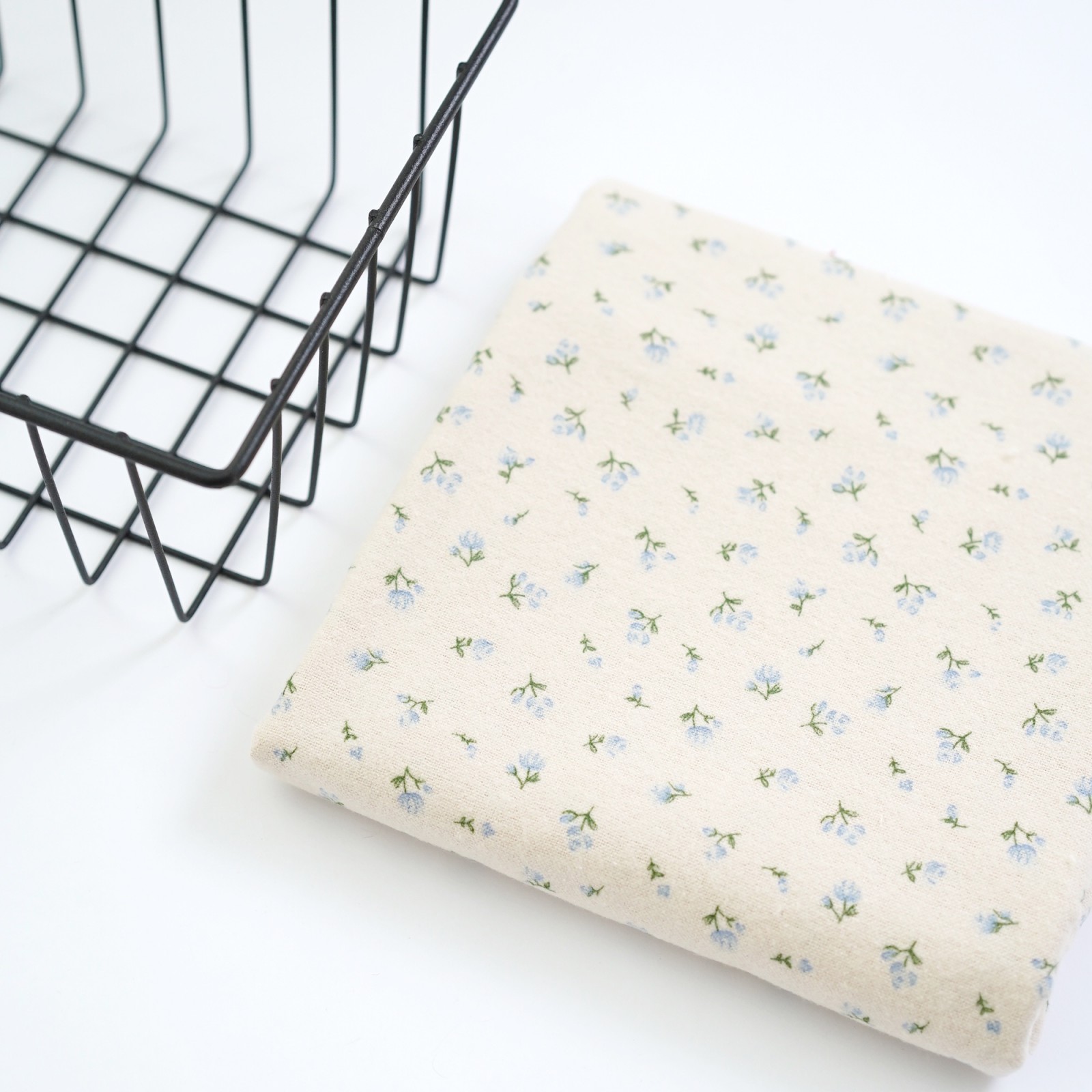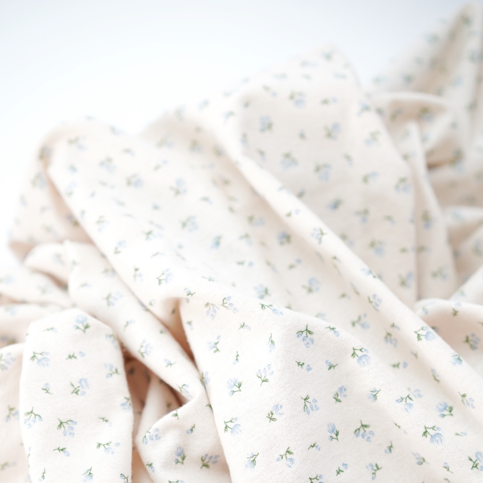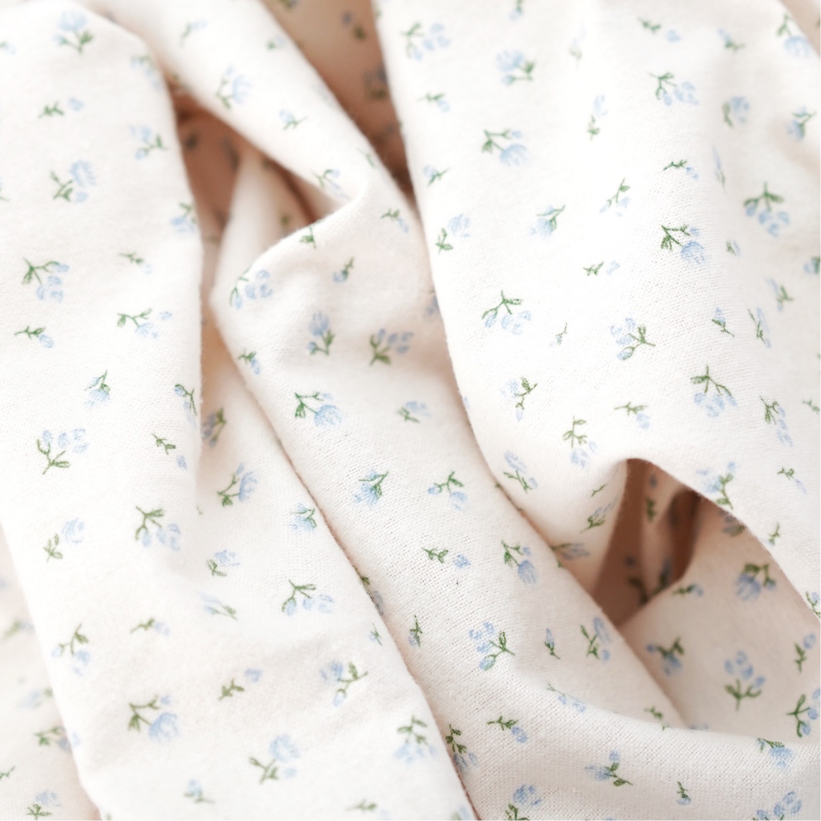 Теплый хлопок. Цвет - голубые цветы на молоке