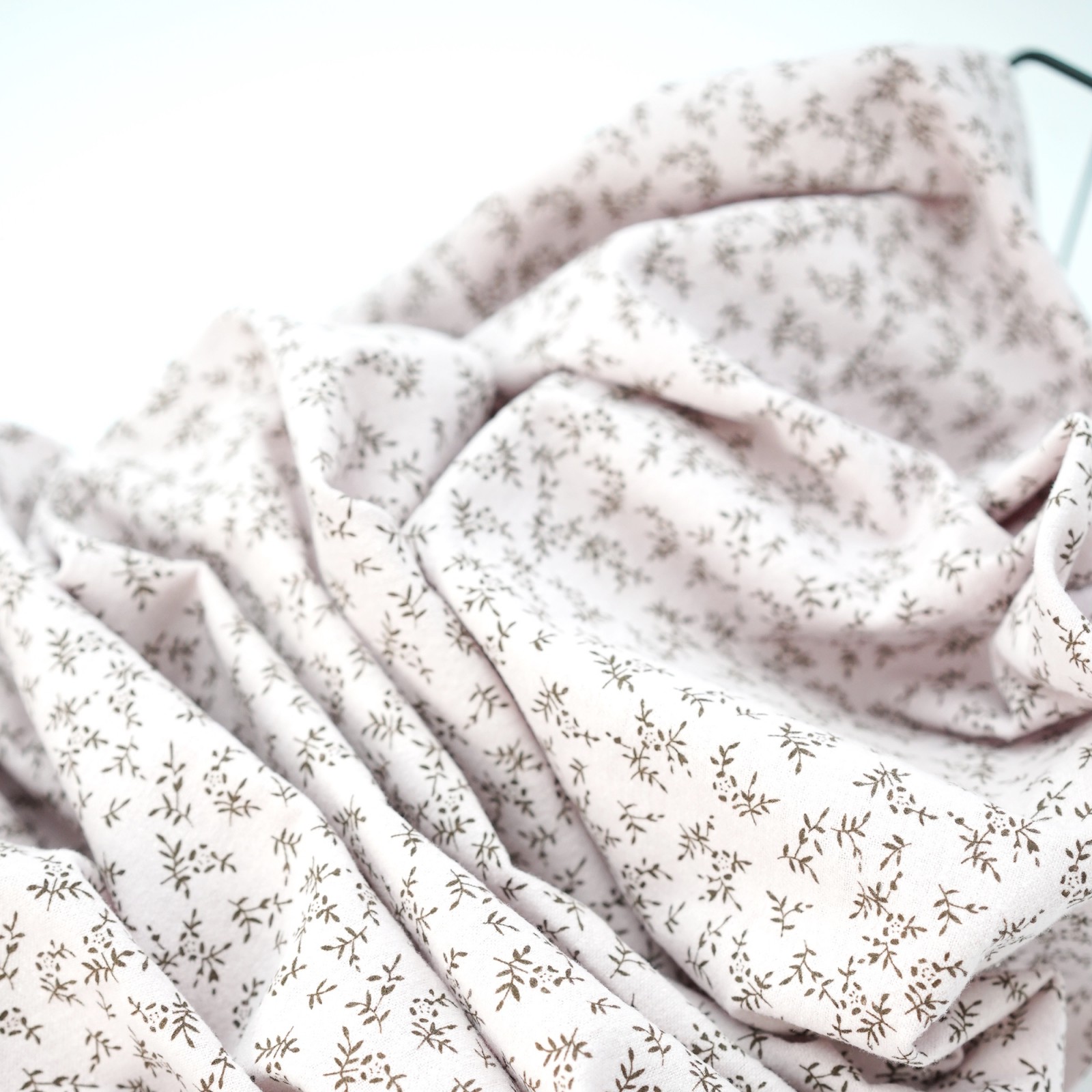 Теплый хлопок. Цвет - черные веточки на розовом