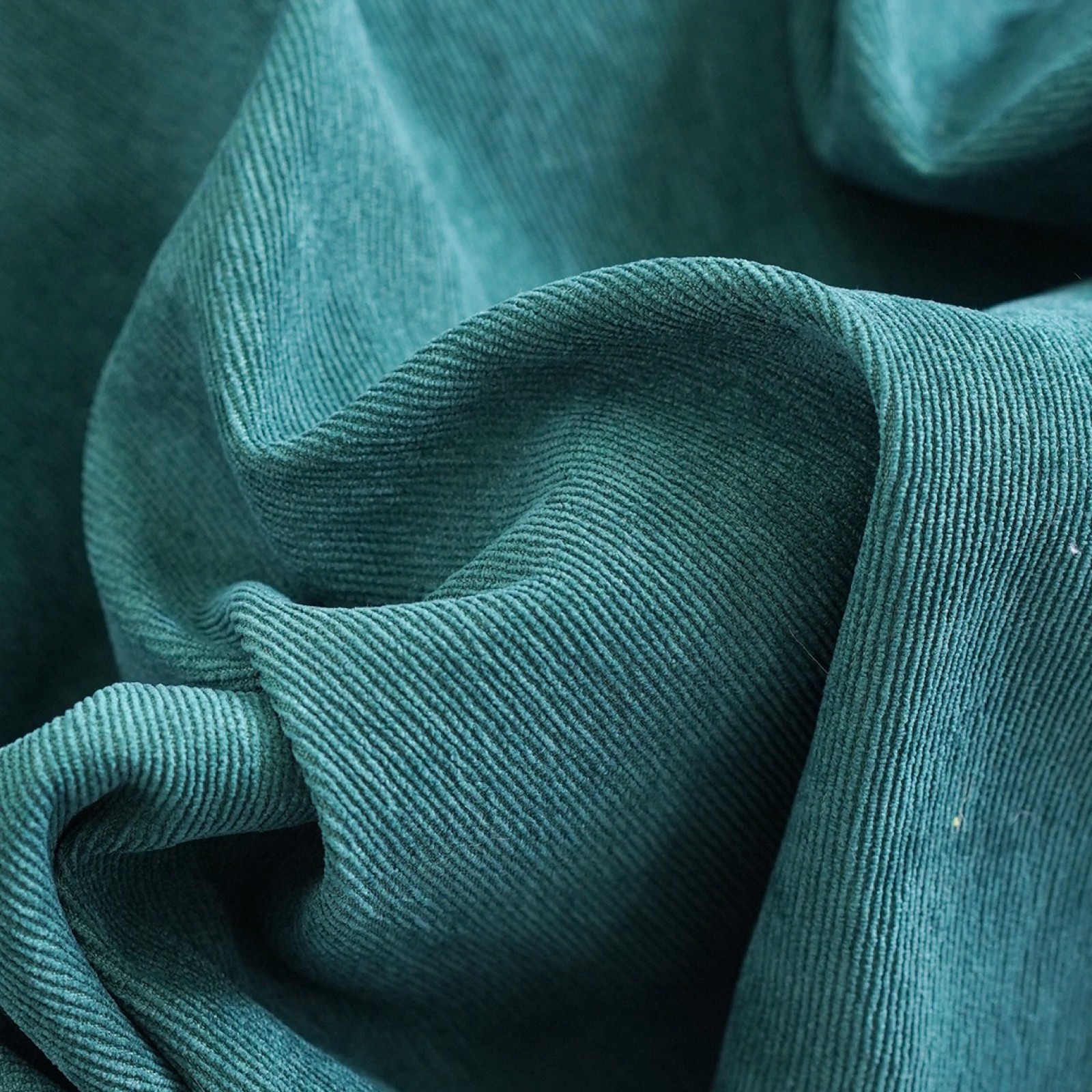 Ткань микровельвет - это мягкая и плюшевая ткань, выполненная с использованием специальной технологии, при которой короткие ворсинки плотно располагаются на поверхности материала, создавая бархатистый эффект в рубчик. Ширина рубчика около 1 мм