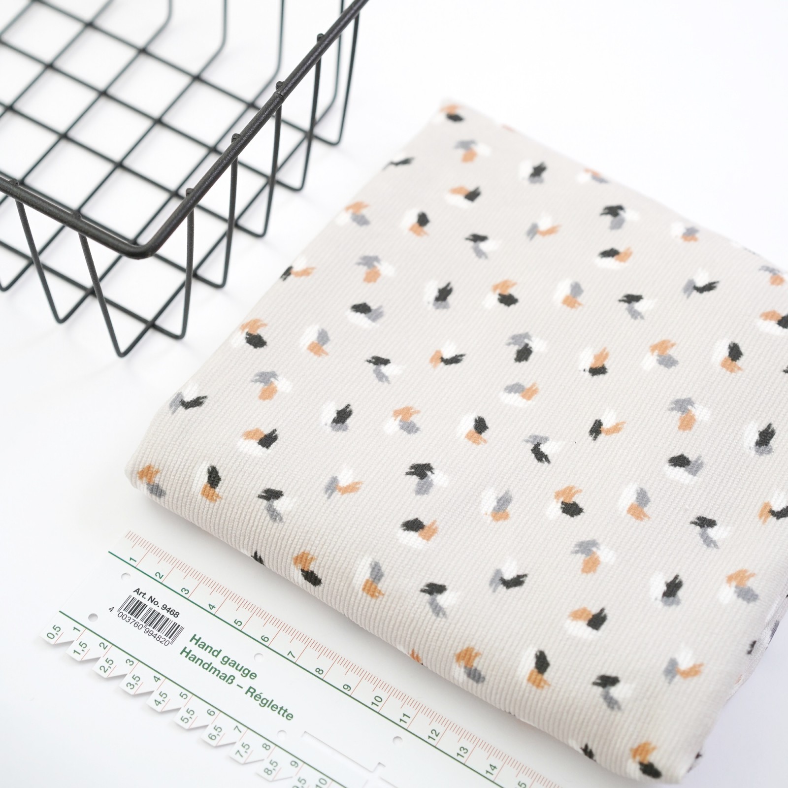 Ткань слегка растяжима по утку. Ширина рубчика около 1,5 мм