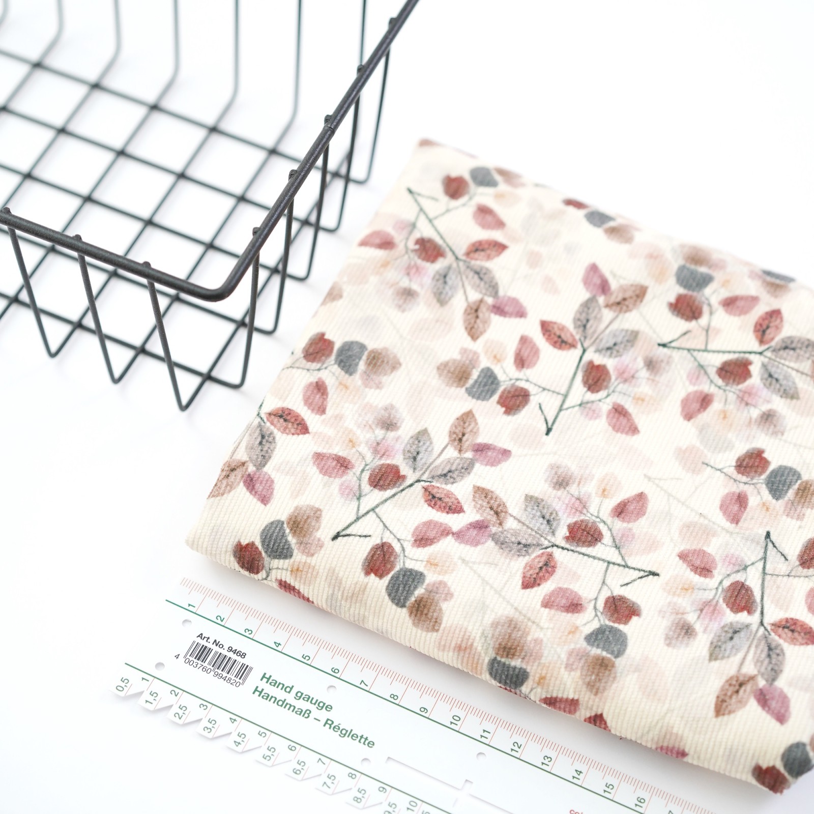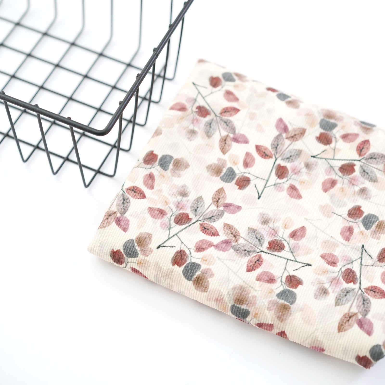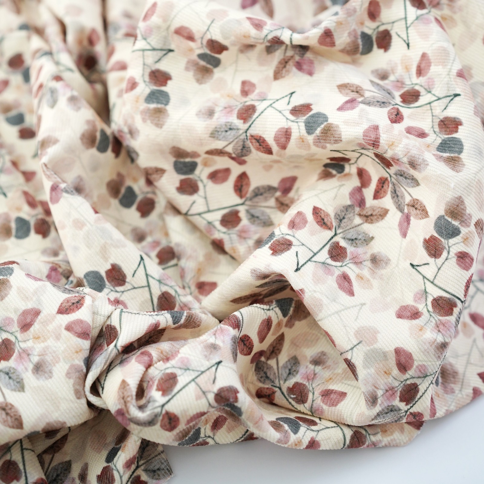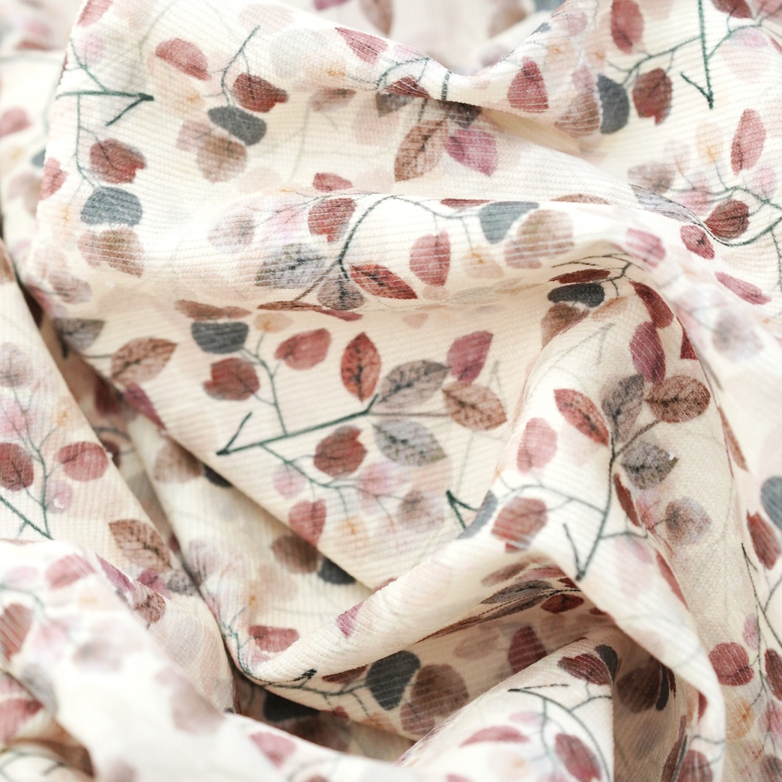 Микровельвет принтованный. Цвет - акварельные листья на молоке
