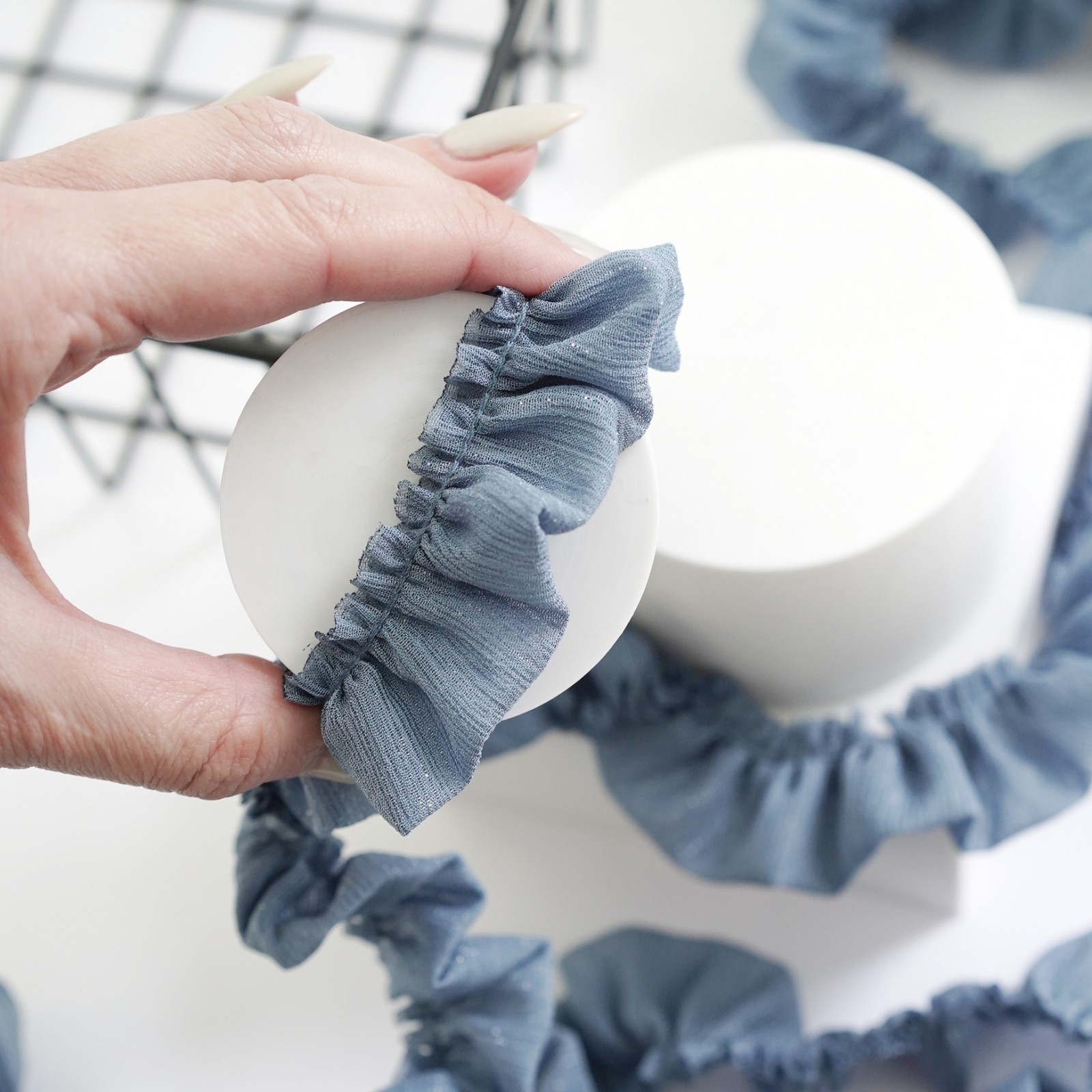 Кружево из шифона волан. Цвет - джинсовый синий
