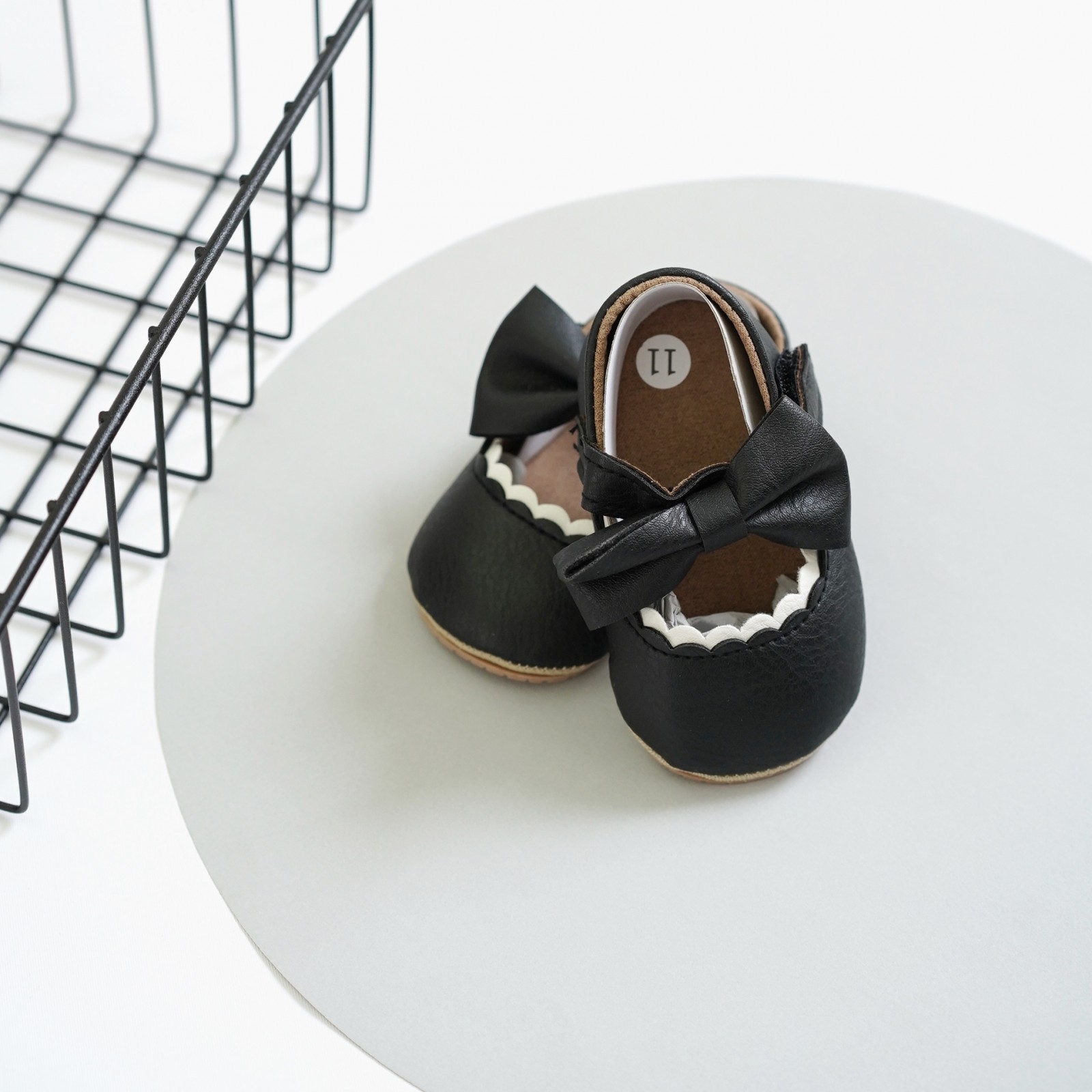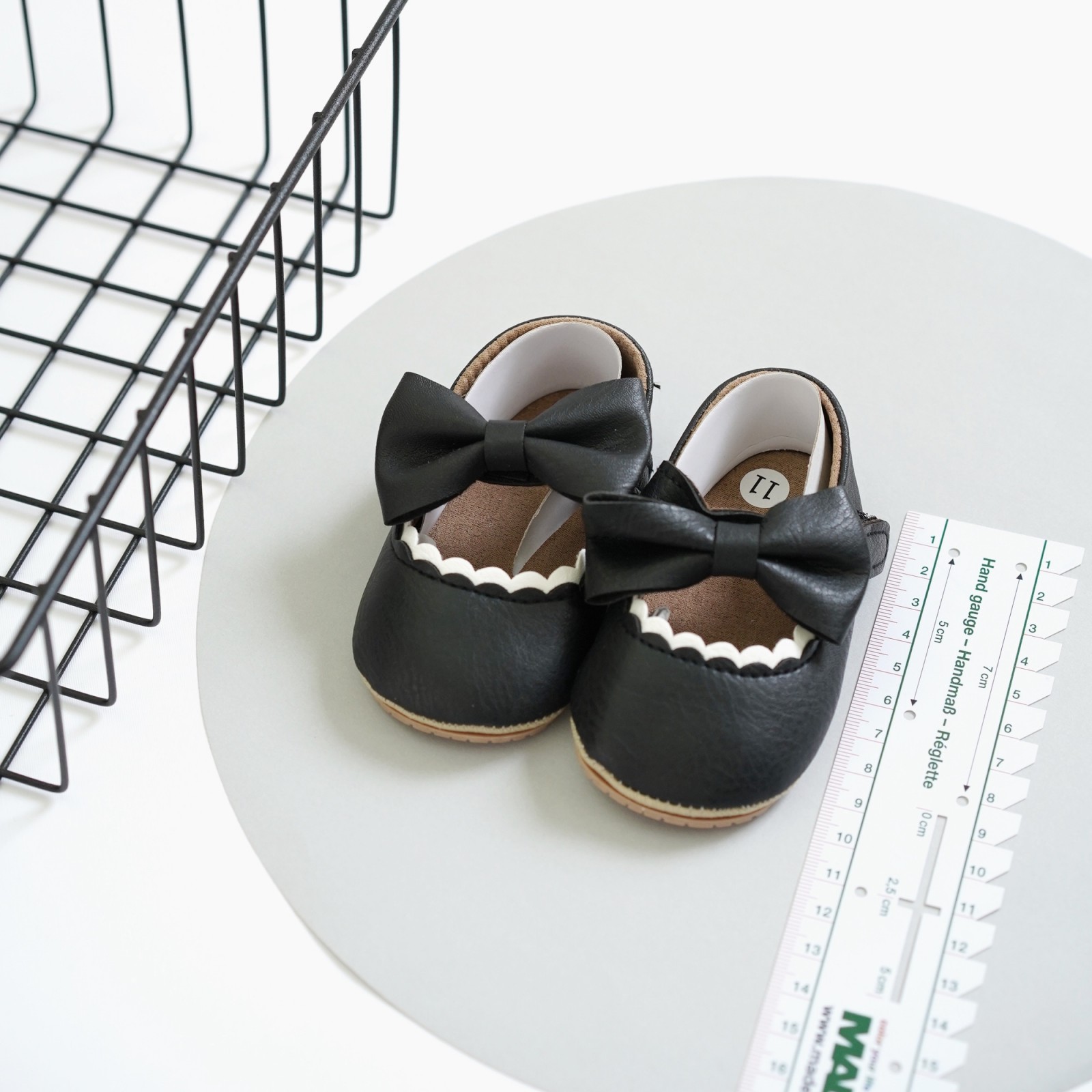Туфли с бантиком. Волнистый край 11 см. ЦВЕТ - черный с белым