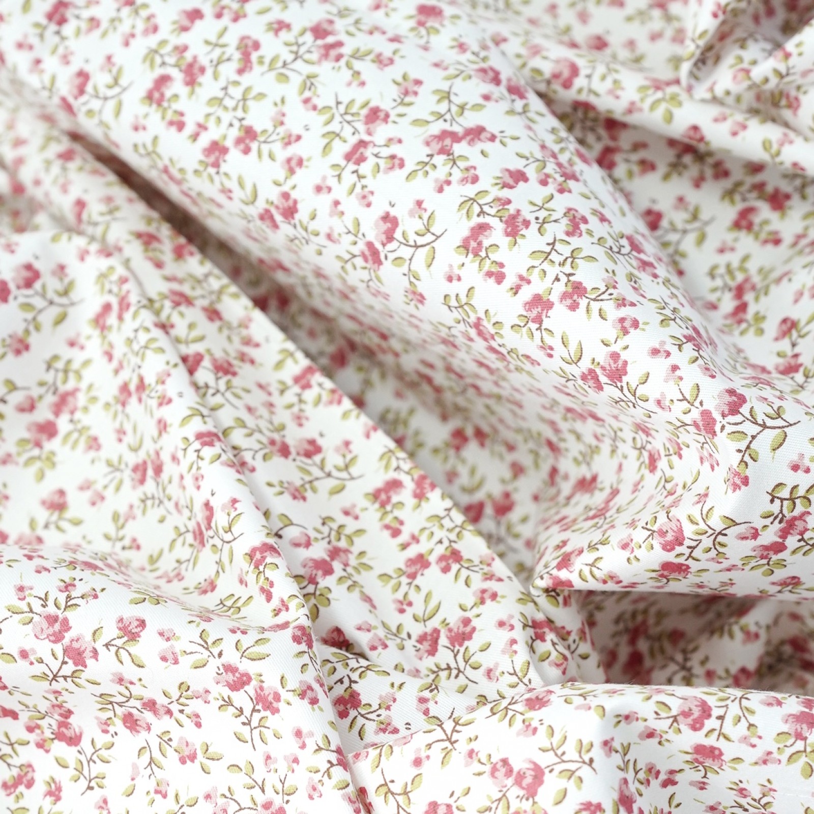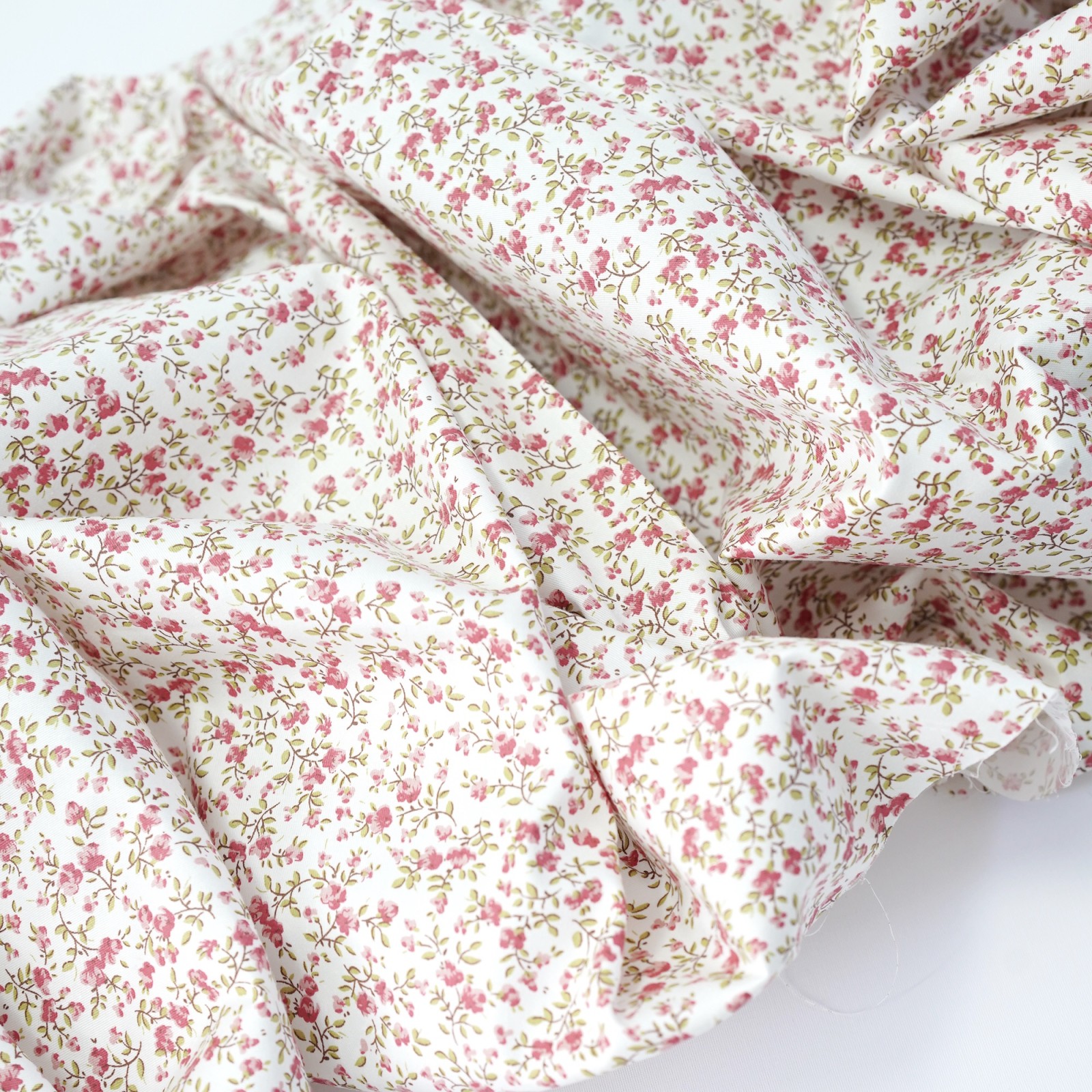 Сатин. 100% хлопок. ЦВЕТ - мелкие цветы чайная роза на белом
