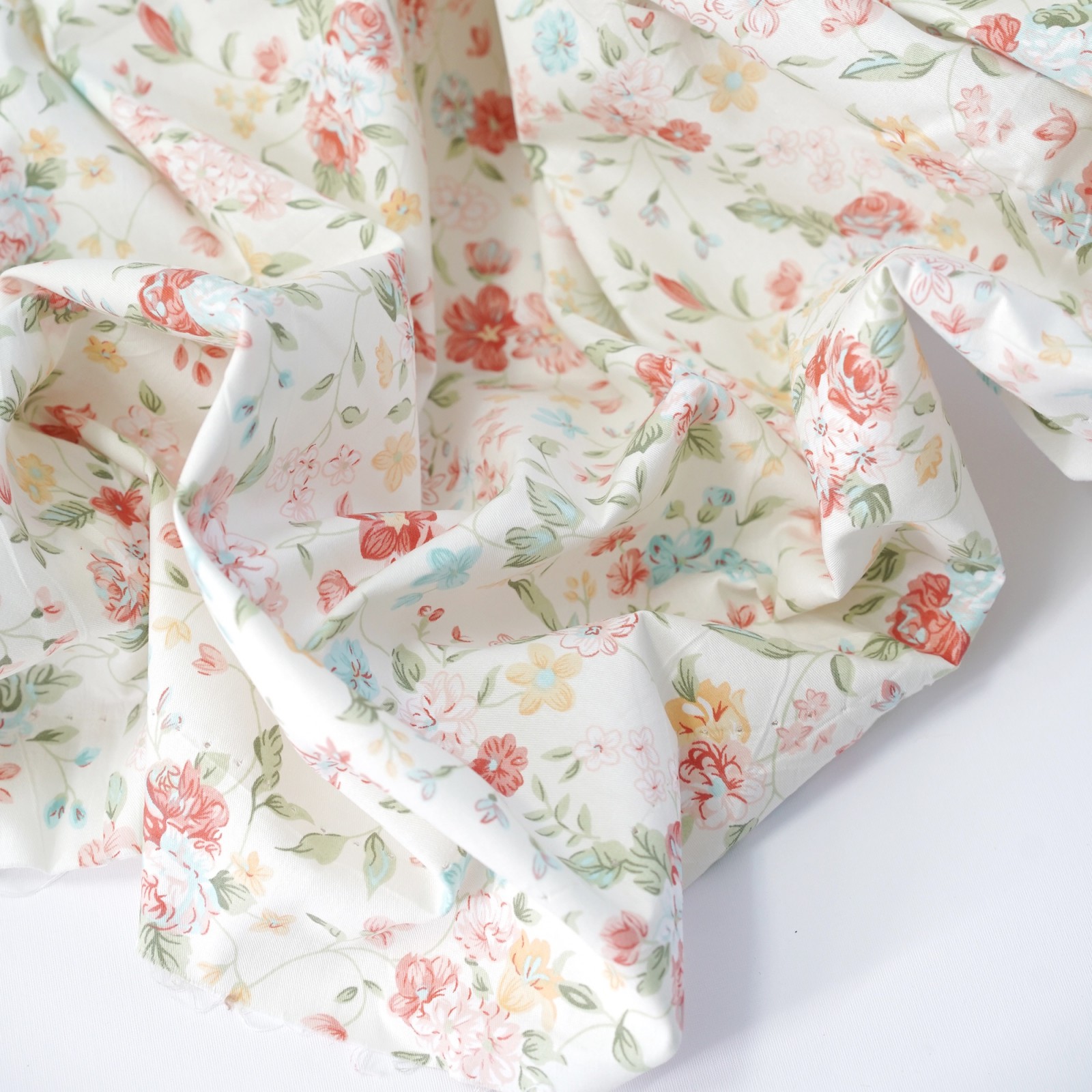 Сатин. 100% хлопок. ЦВЕТ - винтажные цветы на белом