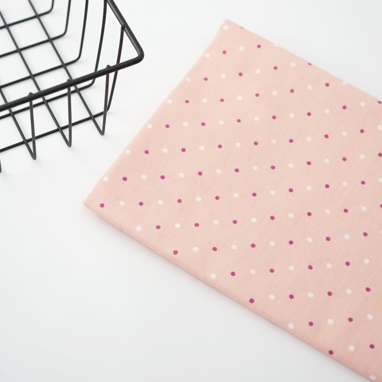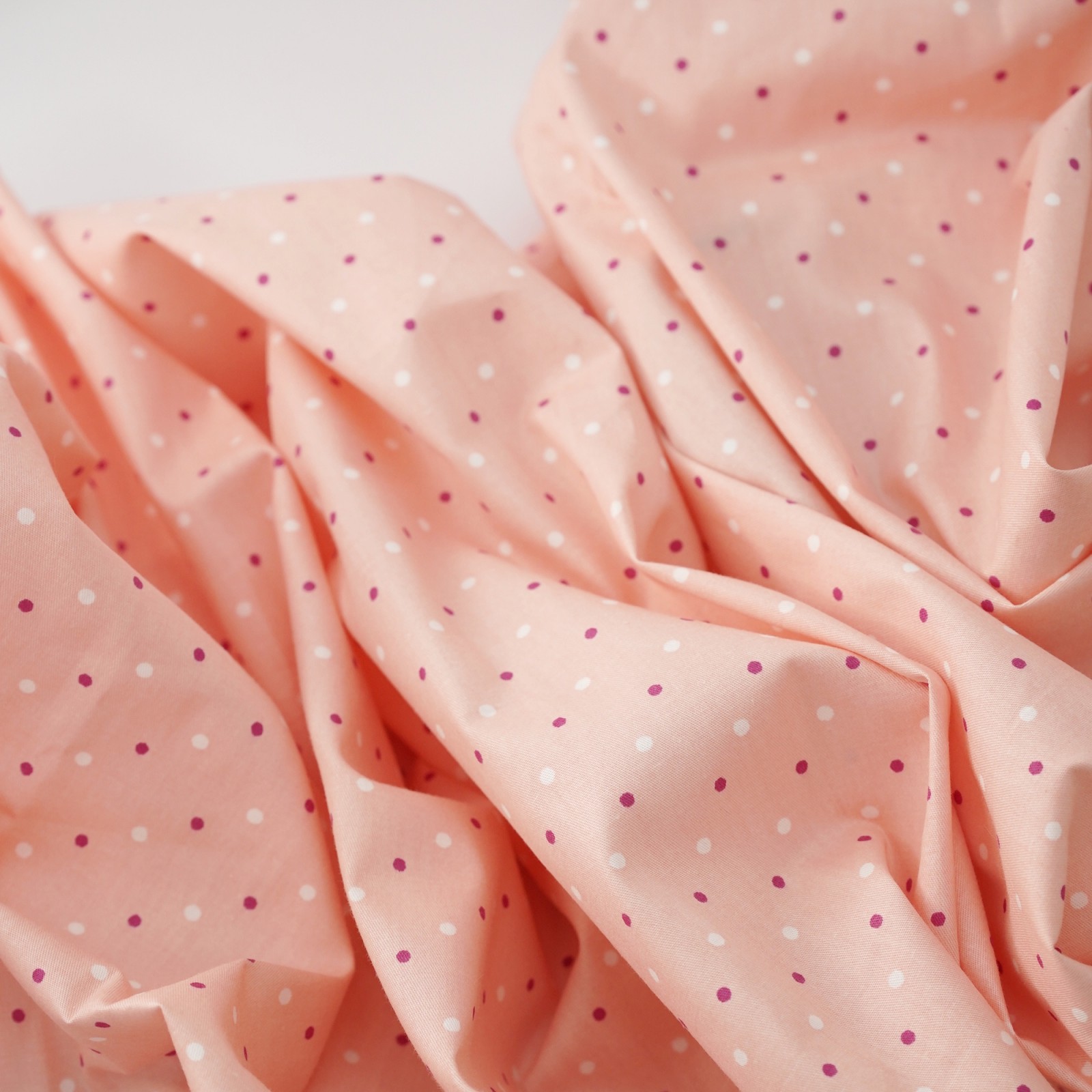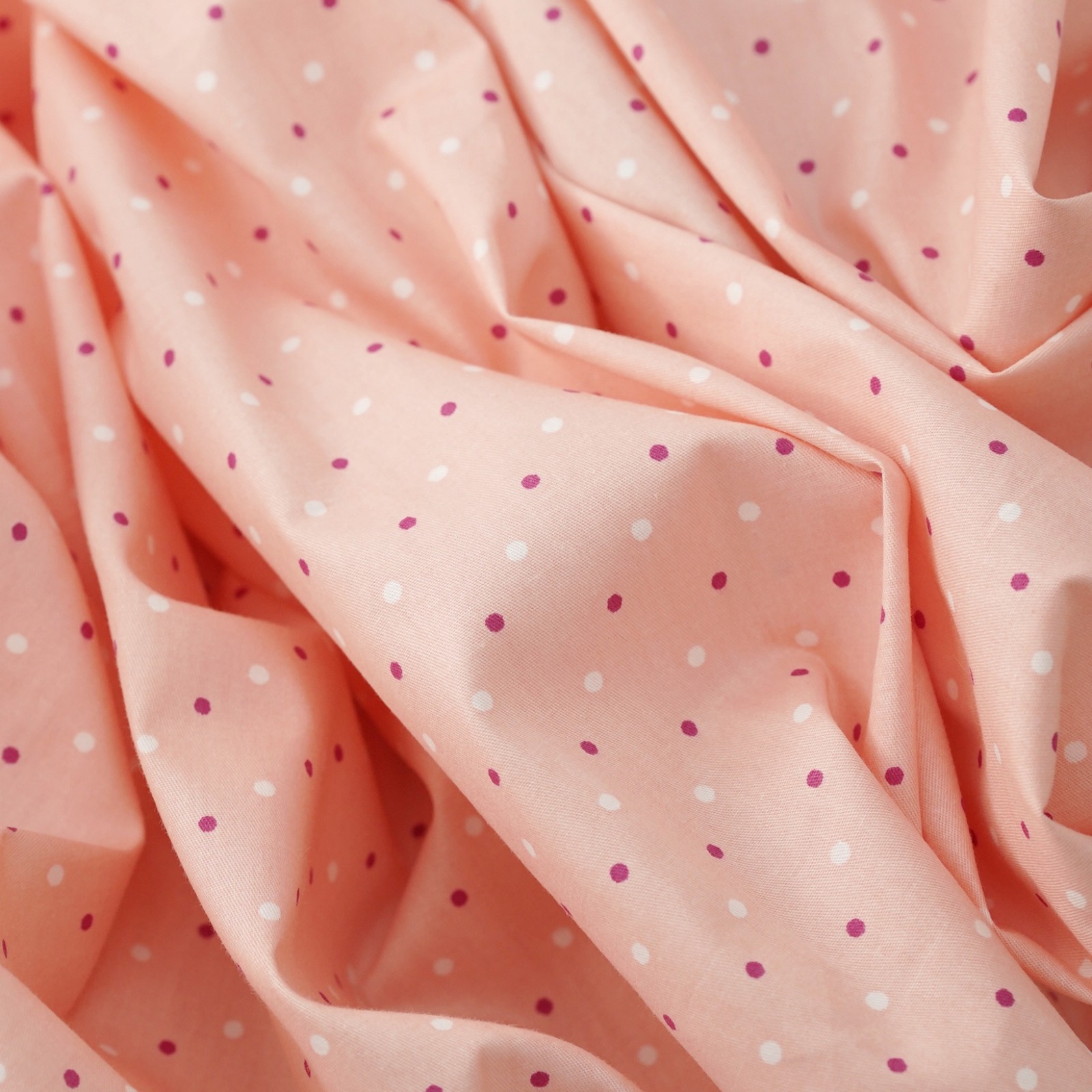 Сатин китайский. ЦВЕТ - персик в разноцветный горох