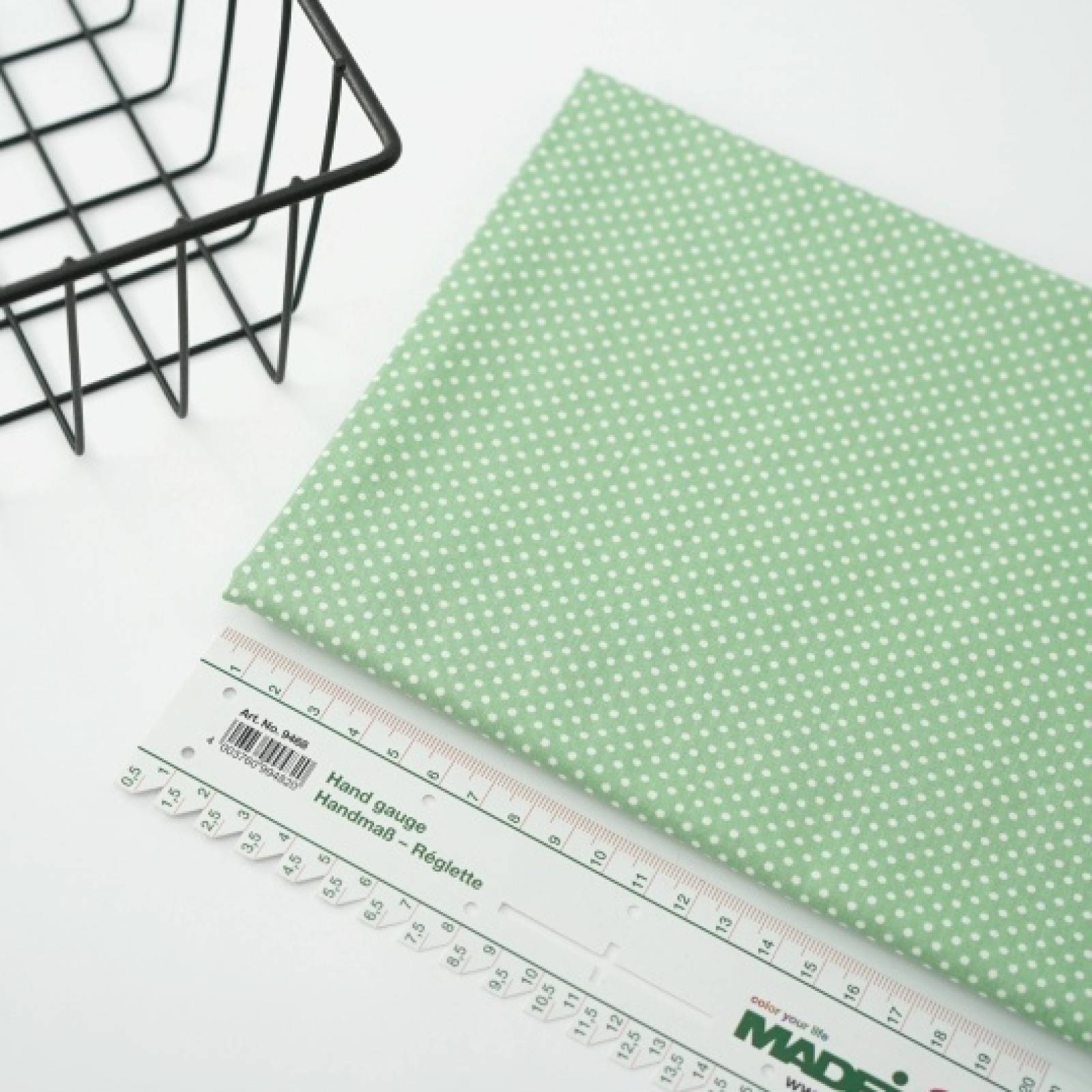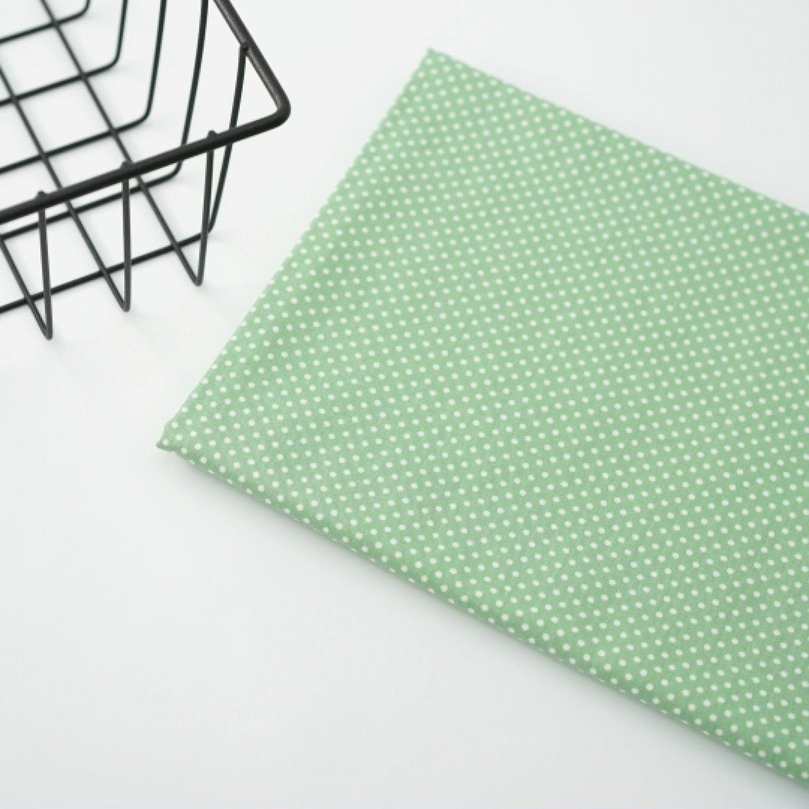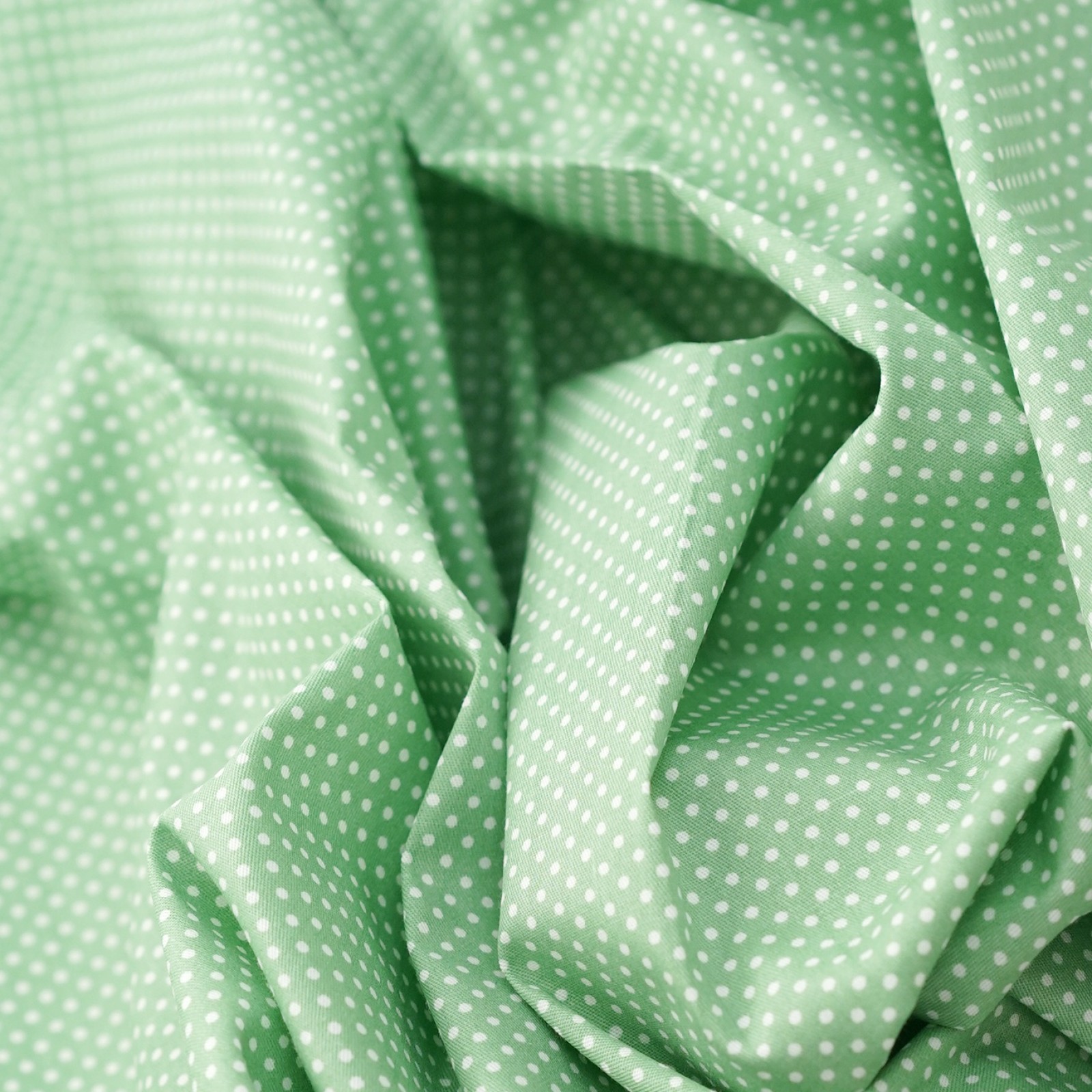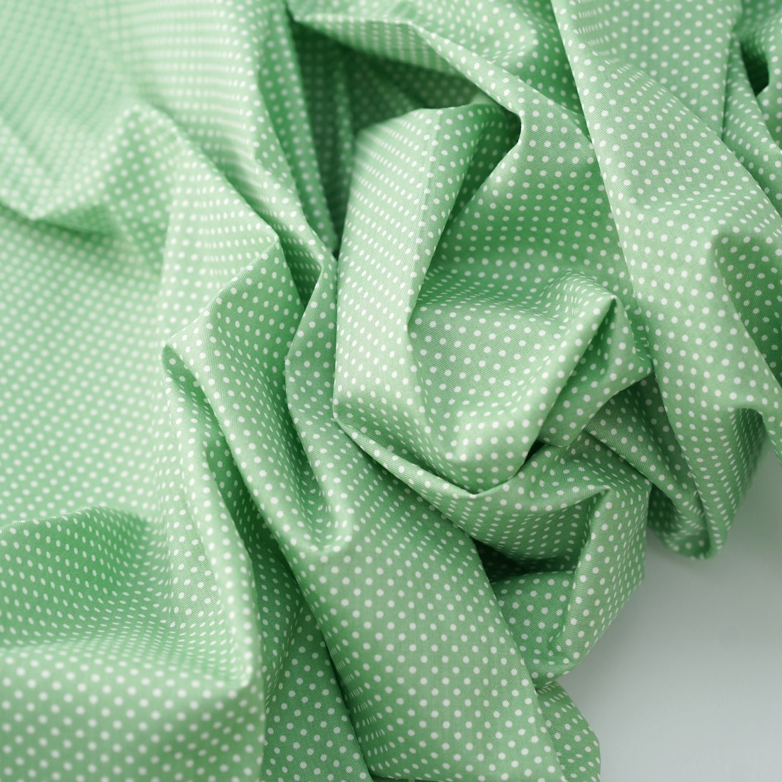 Сатин китайский. ЦВЕТ - белый мелкий горох на зеленом