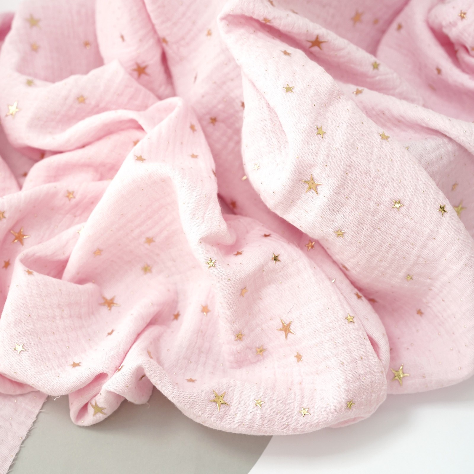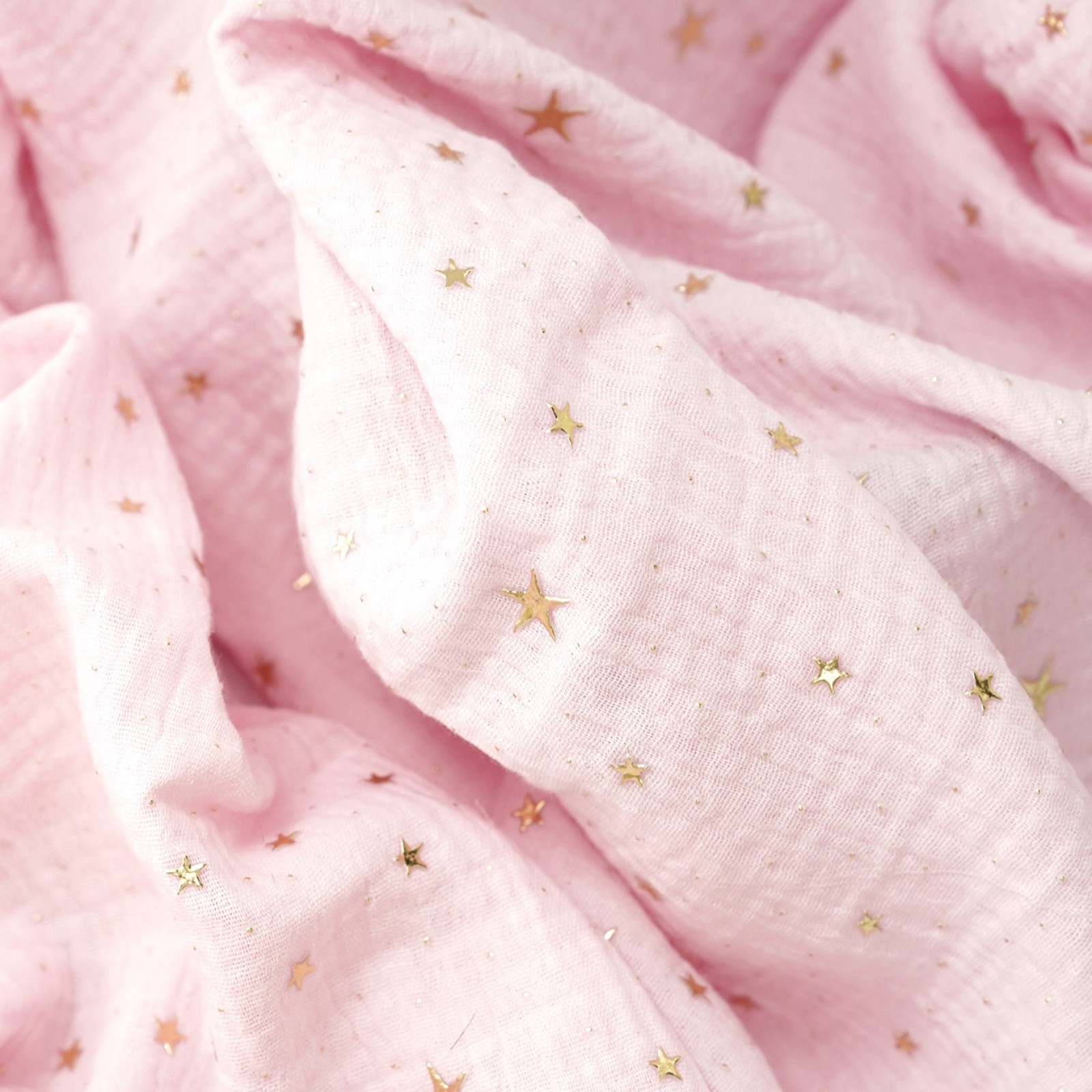 Муслин. ЦВЕТ - глиттерные звезды на розовом