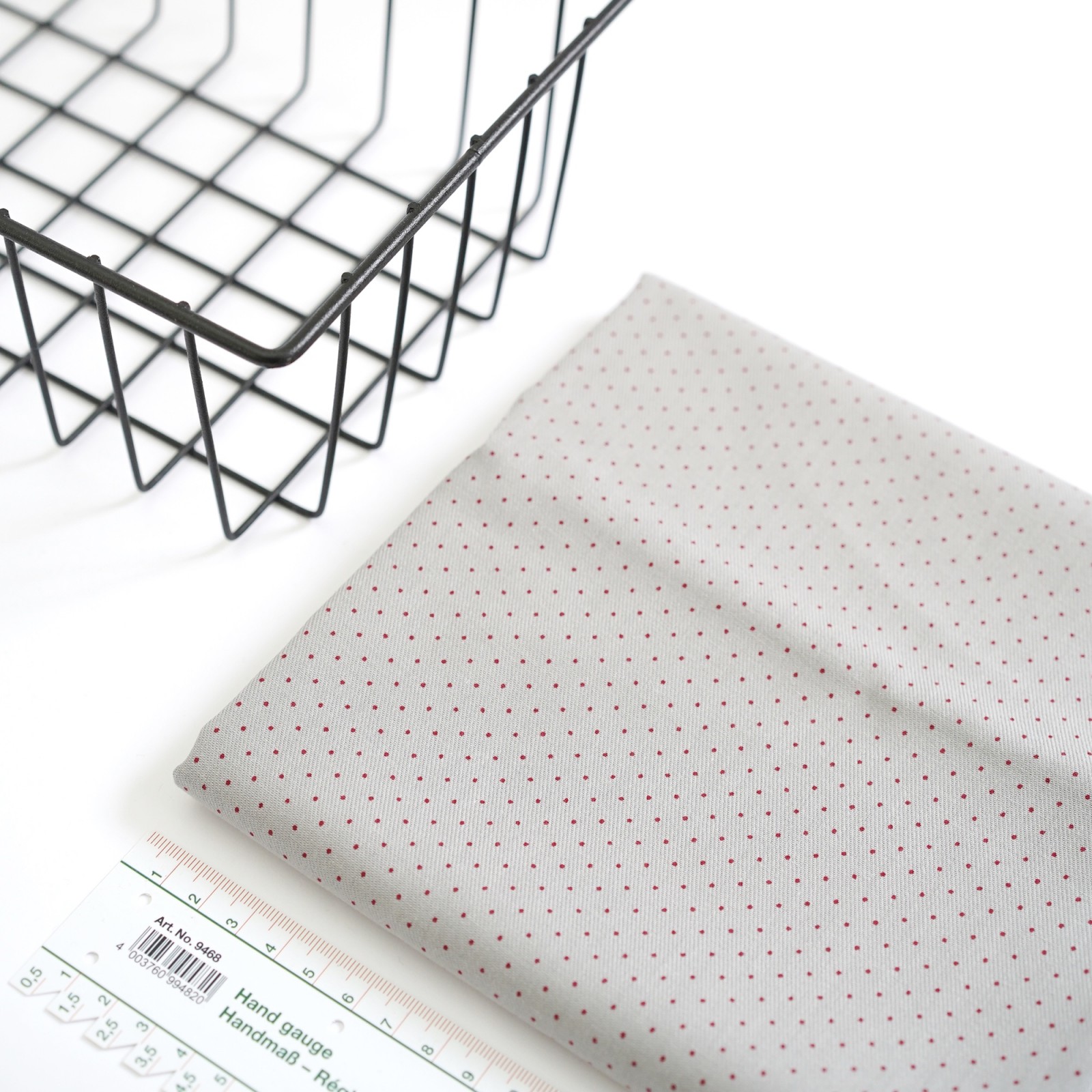 Теплый хлопок тенсель в мелкий горошек. Цвет - красный на серой