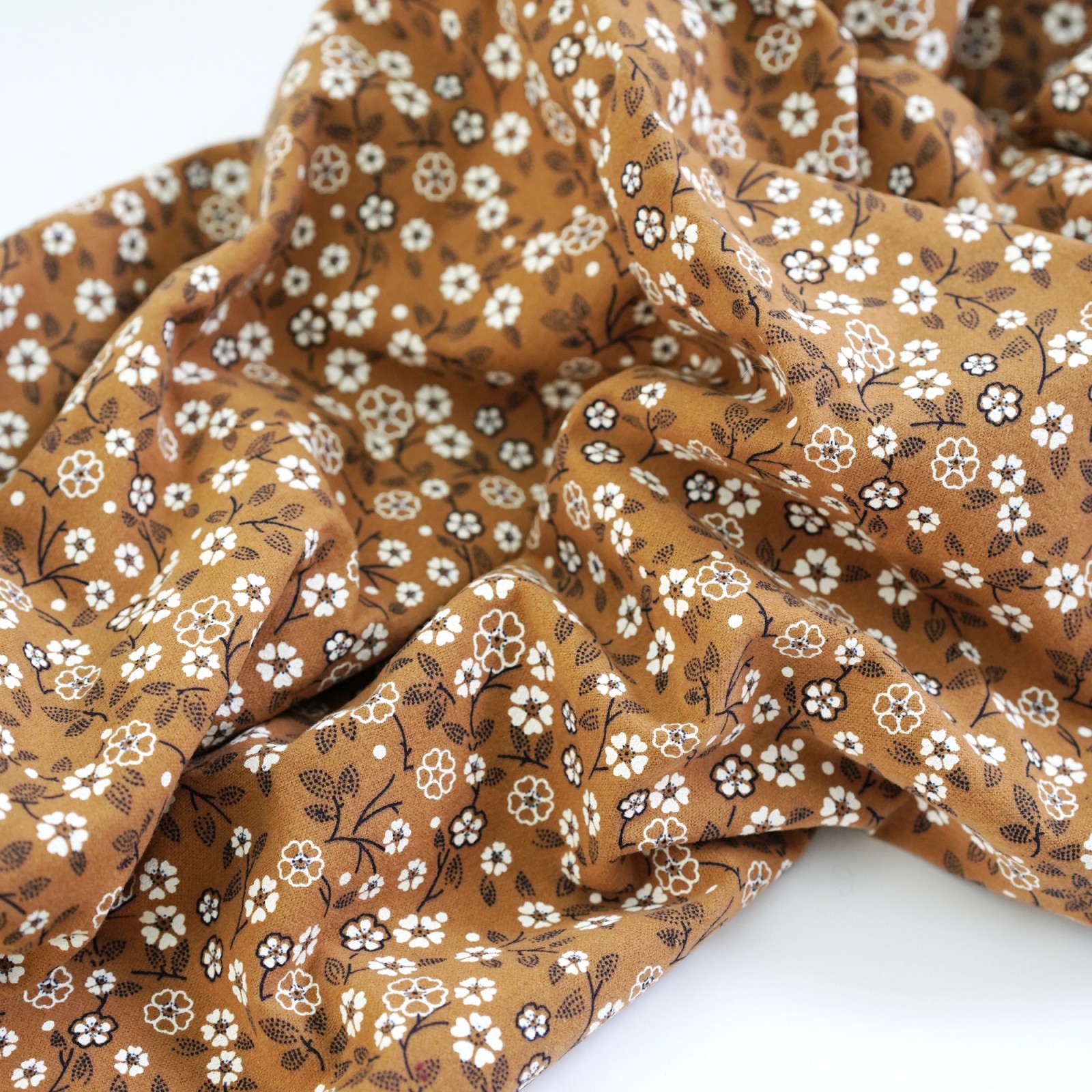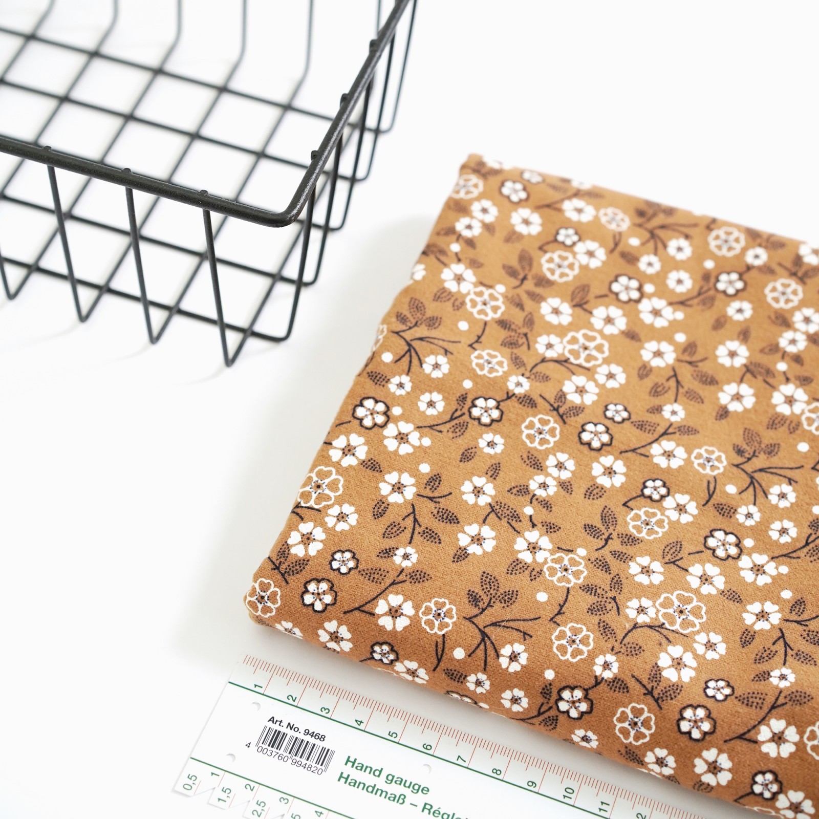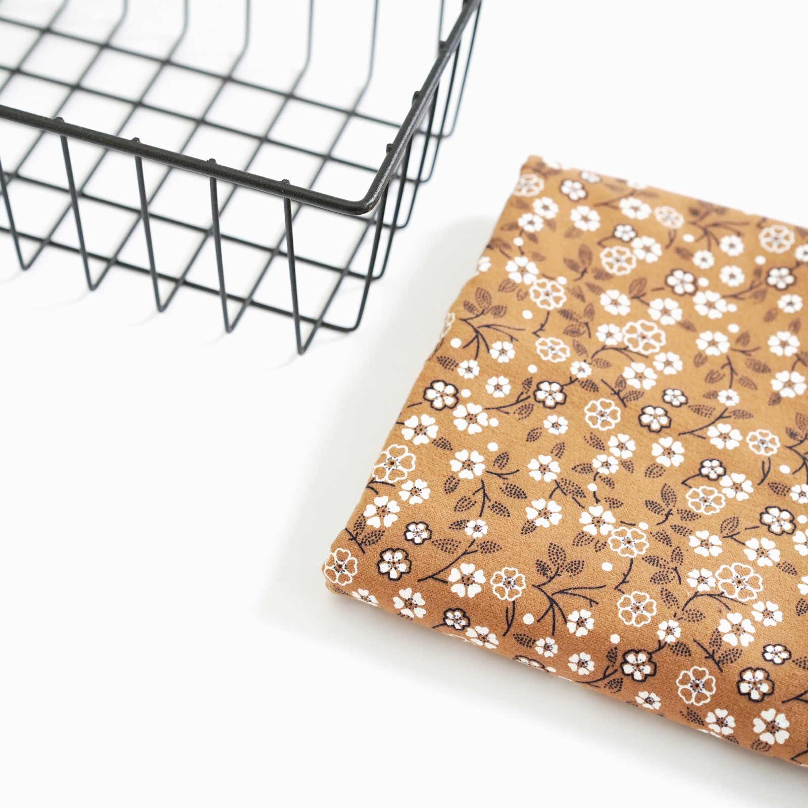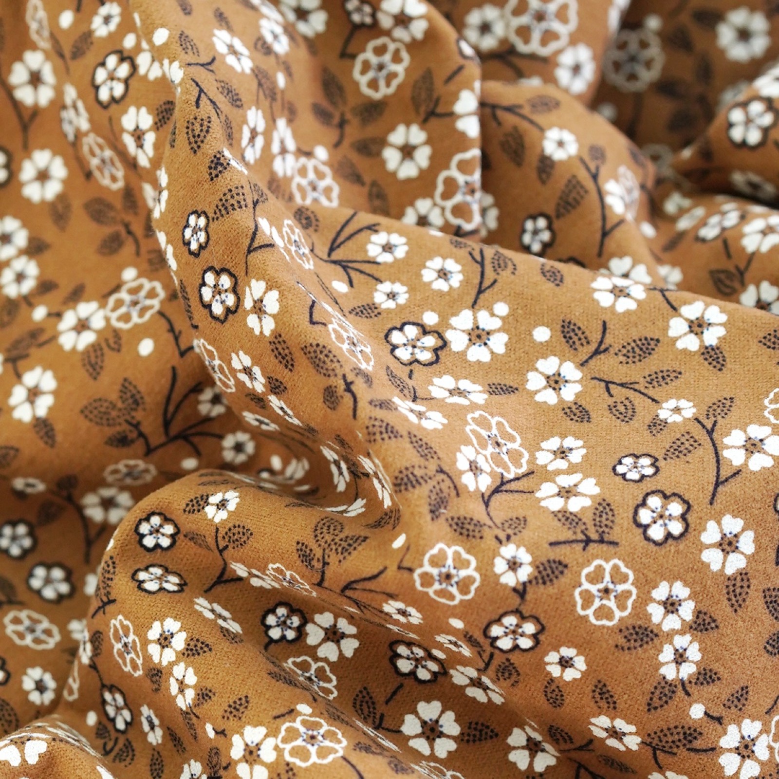 Теплый хлопок. Цвет - белые цветы на темной горчице.
