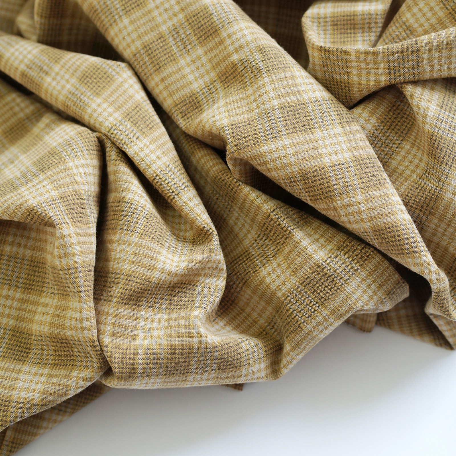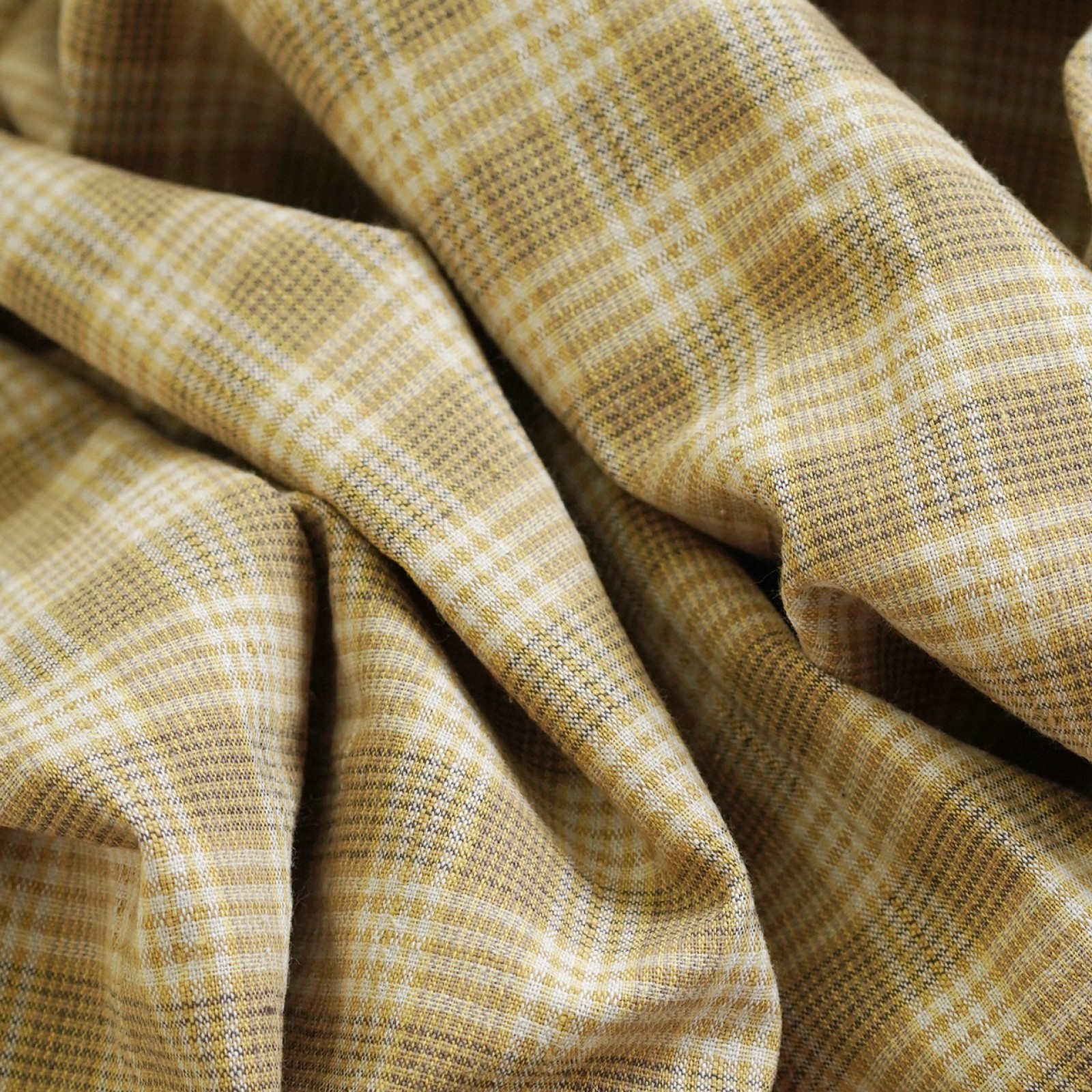 Фактурный хлопок. Клетка #1. Цвет - пыльный желтый