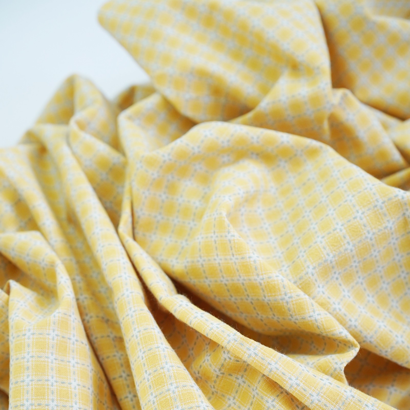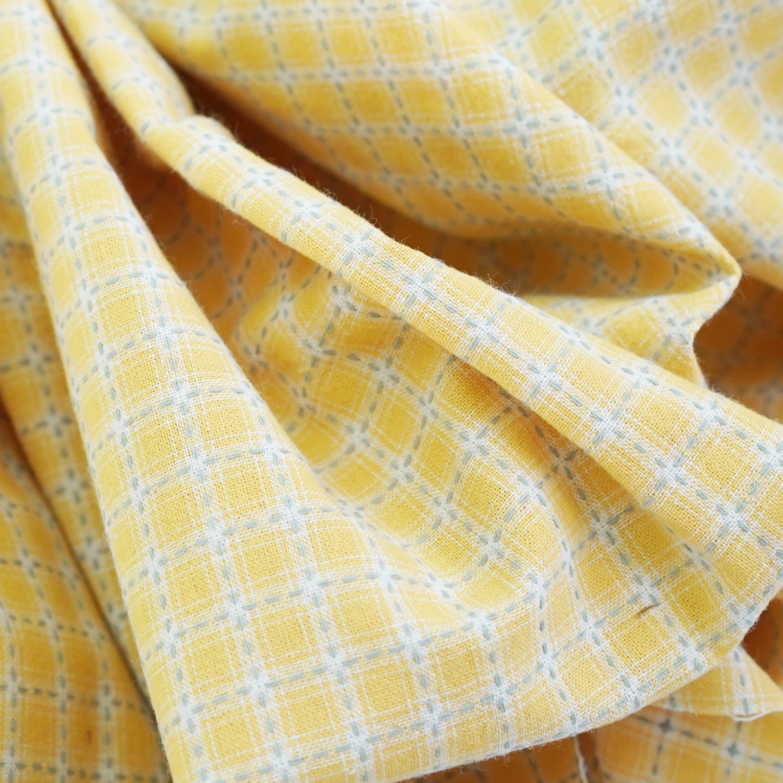 Фактурный хлопок премиум клетка/штрихи. Цвет - желтый