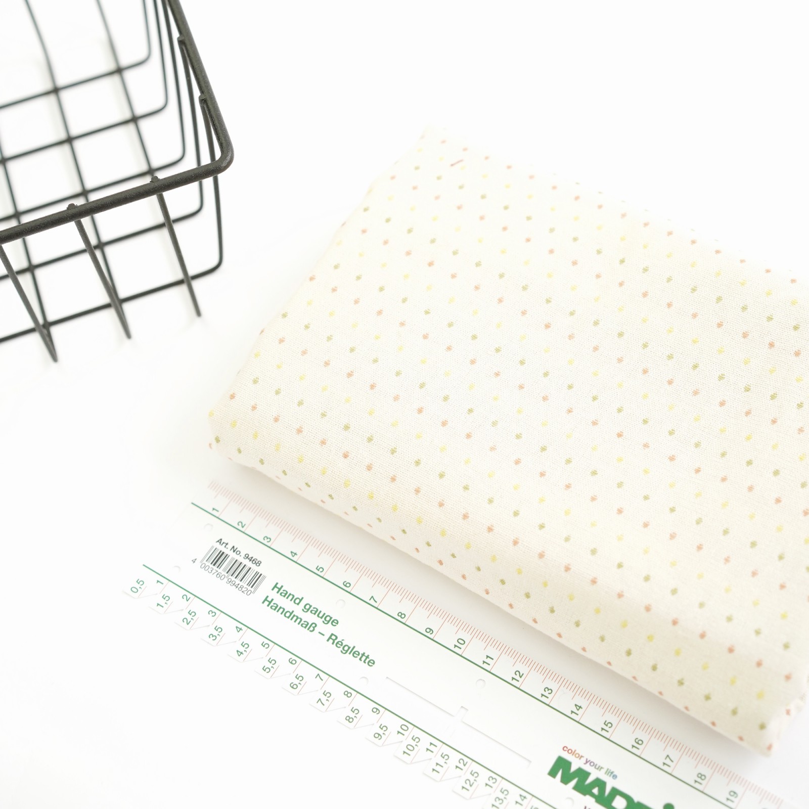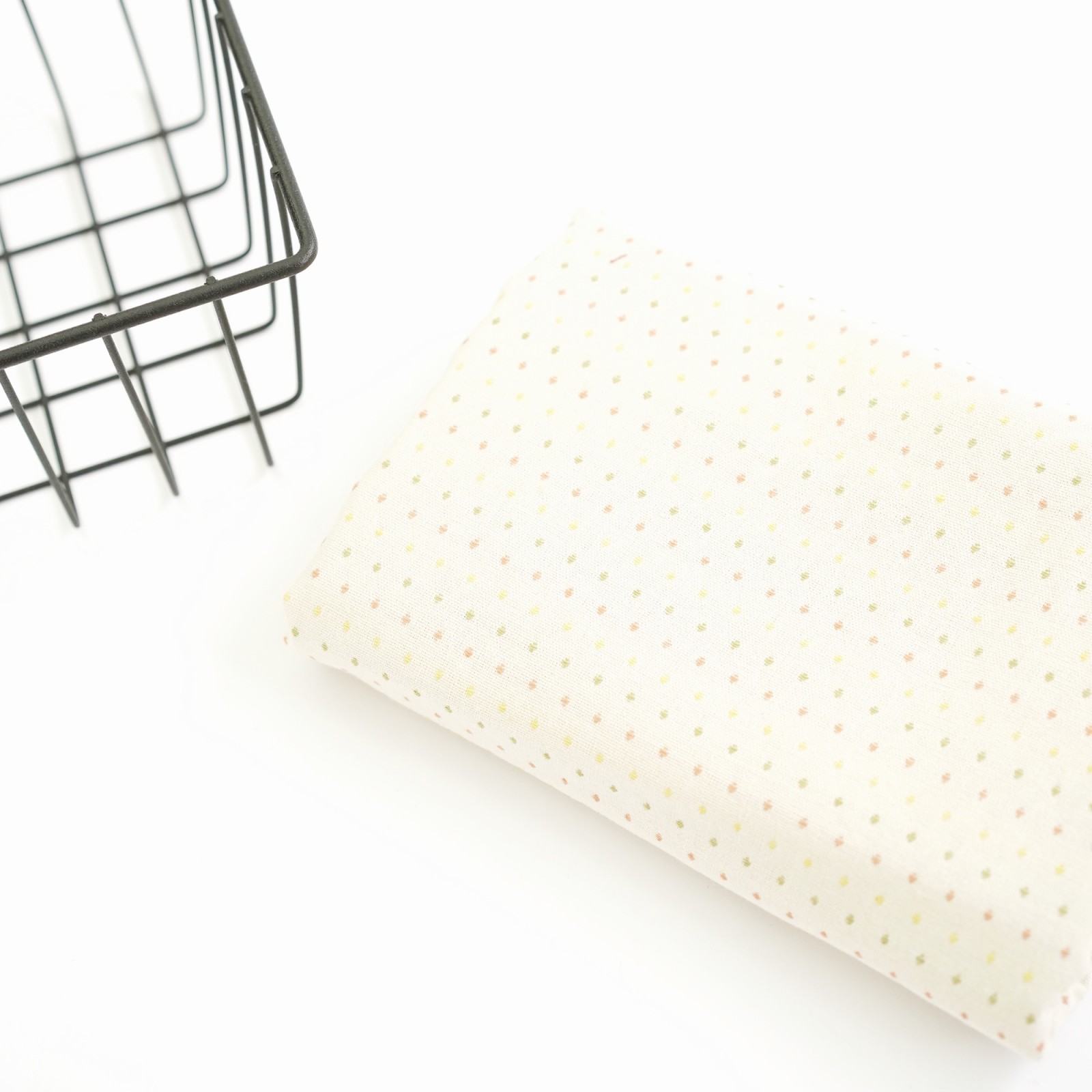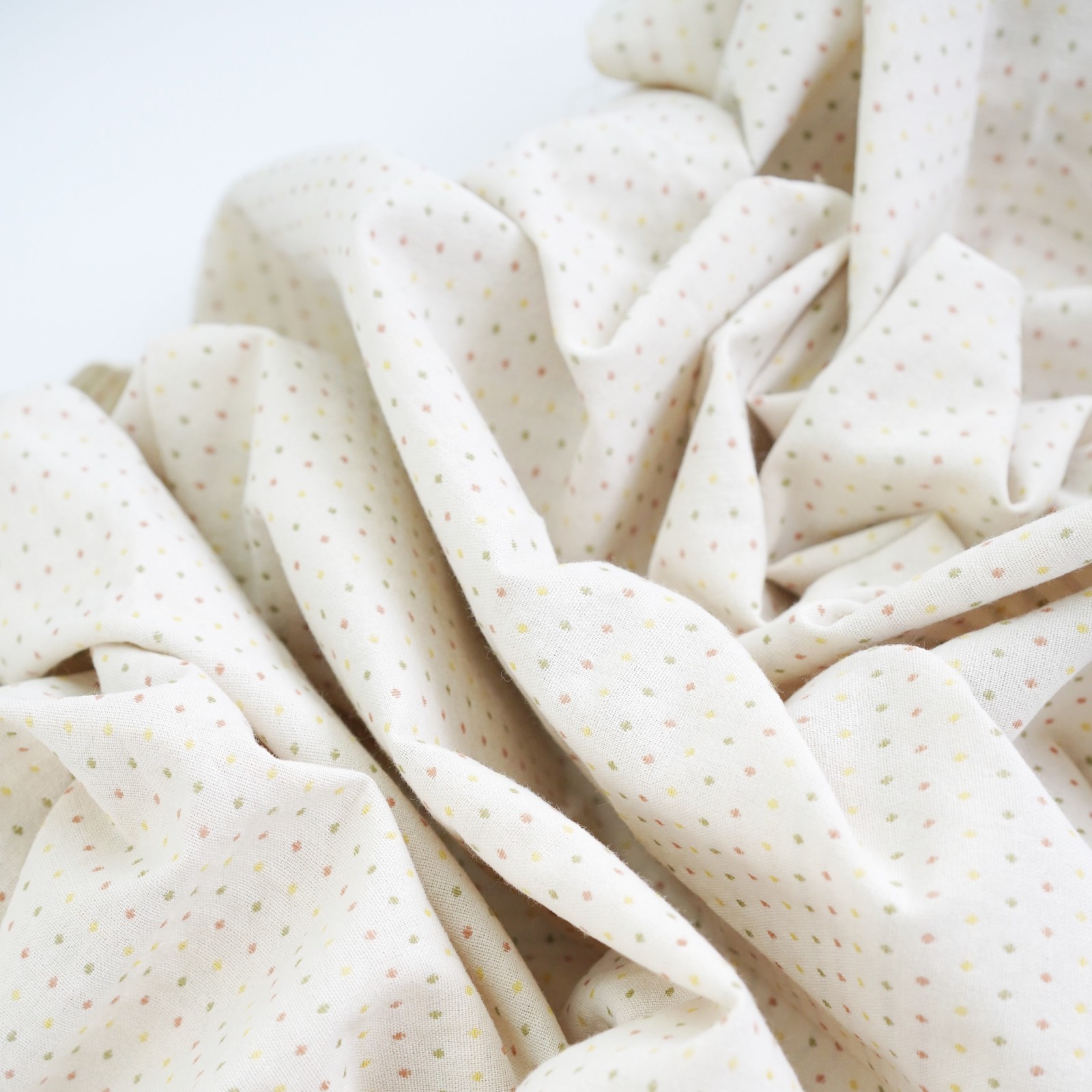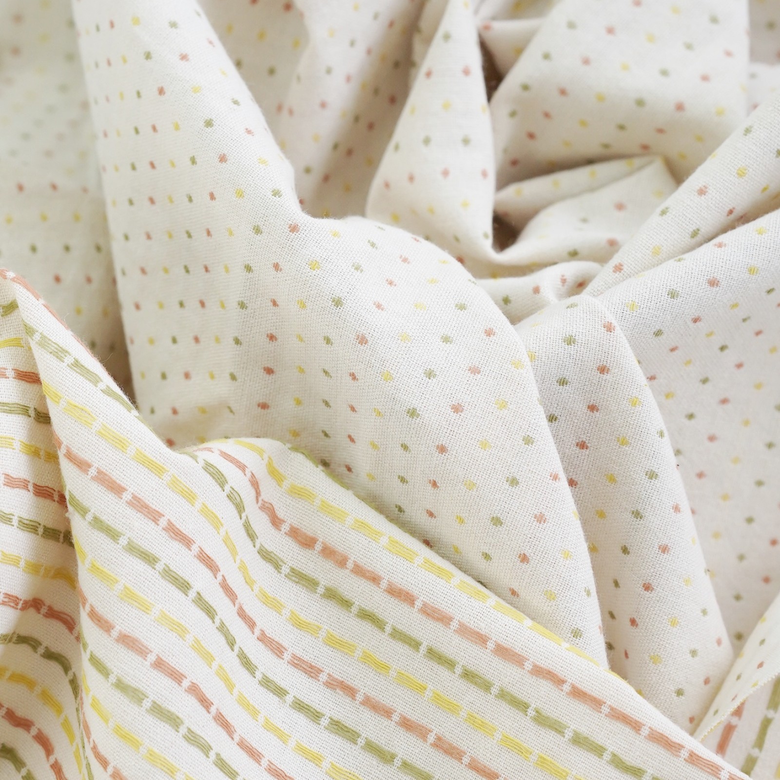 Фактурный хлопок премиум крупные точки/полоски. Цвет - сливочный