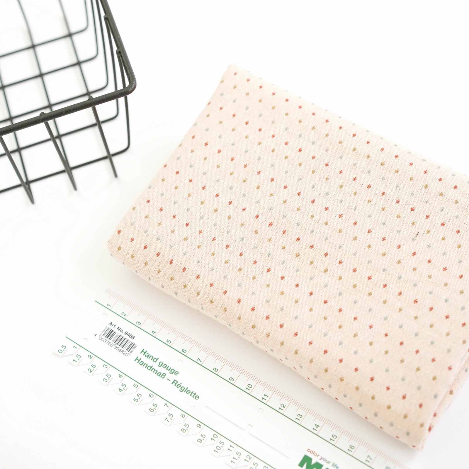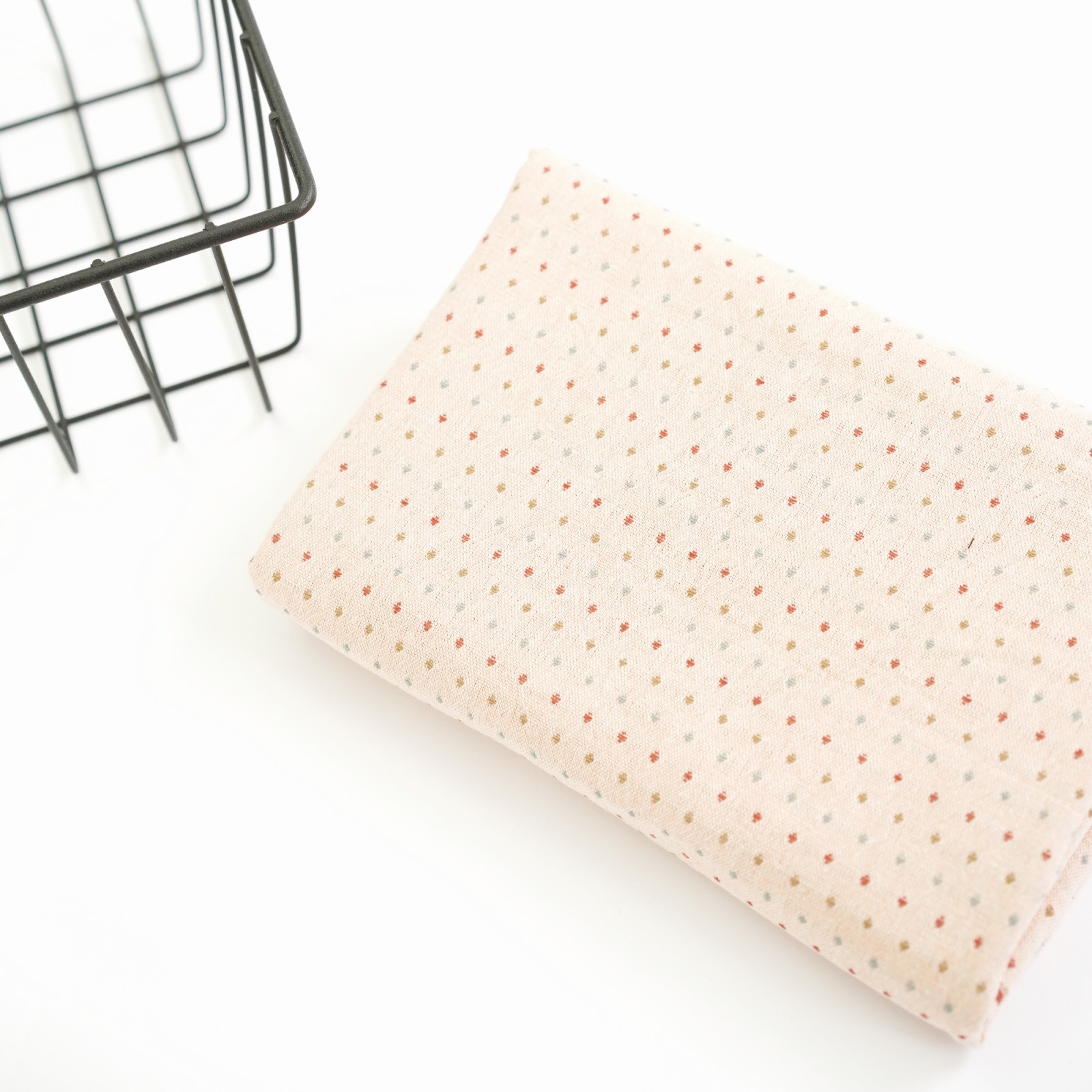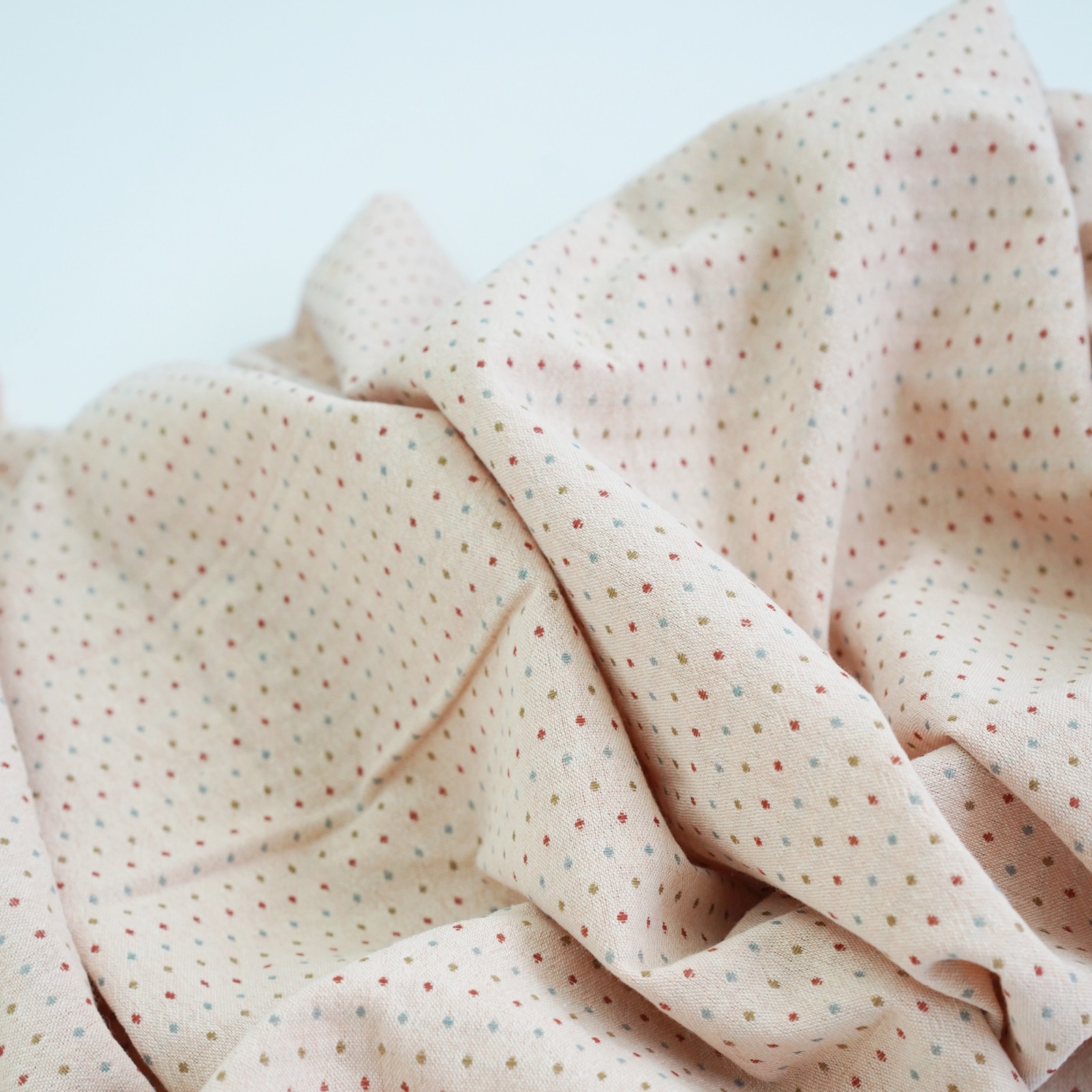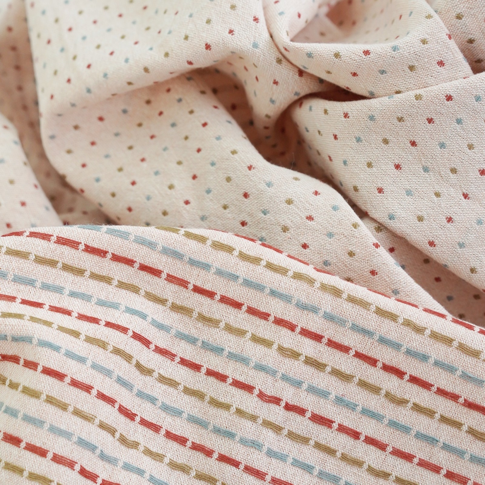 Фактурный хлопок премиум крупные точки/полоски. Цвет - пудра