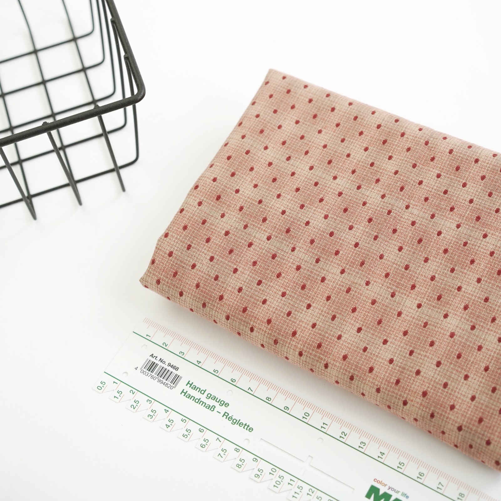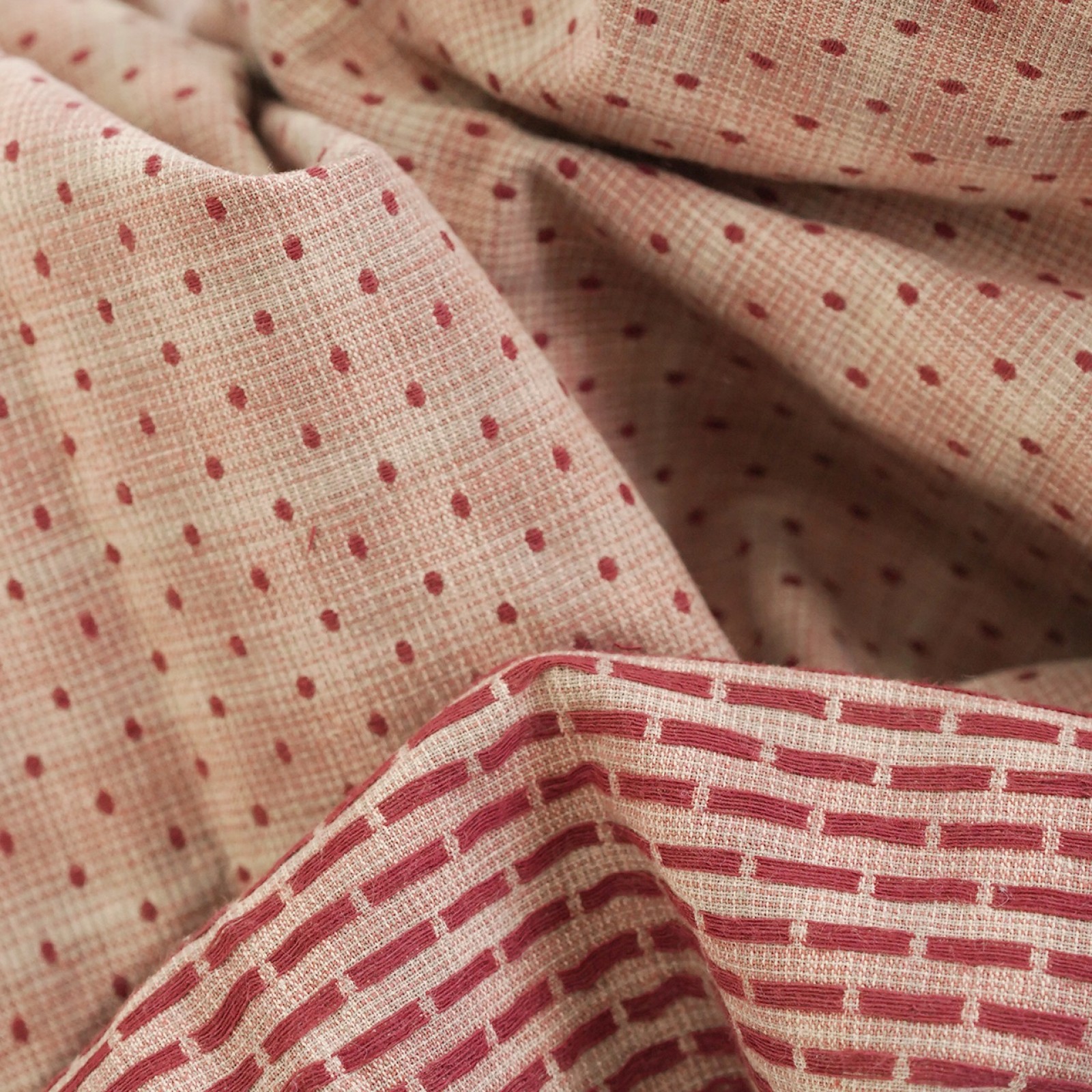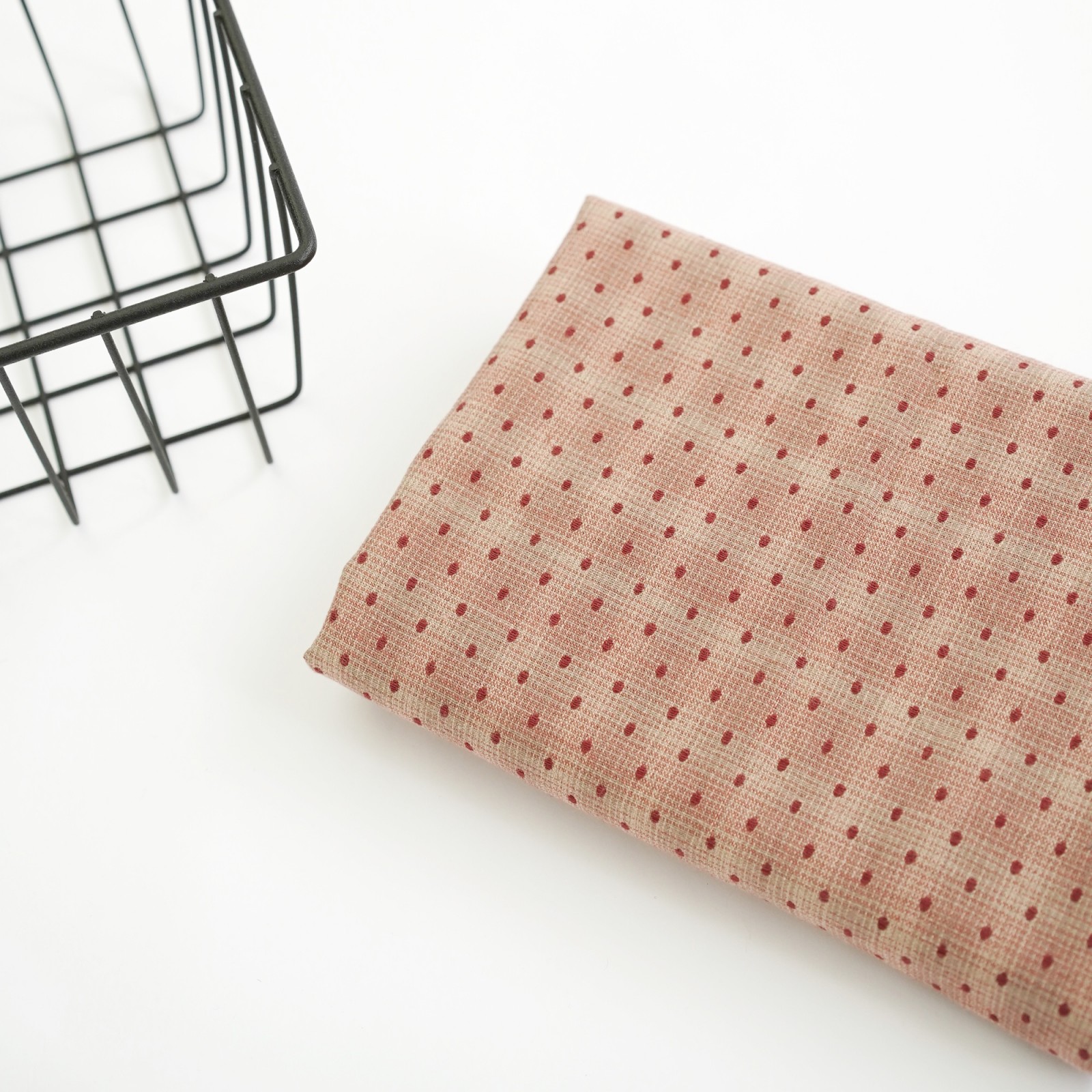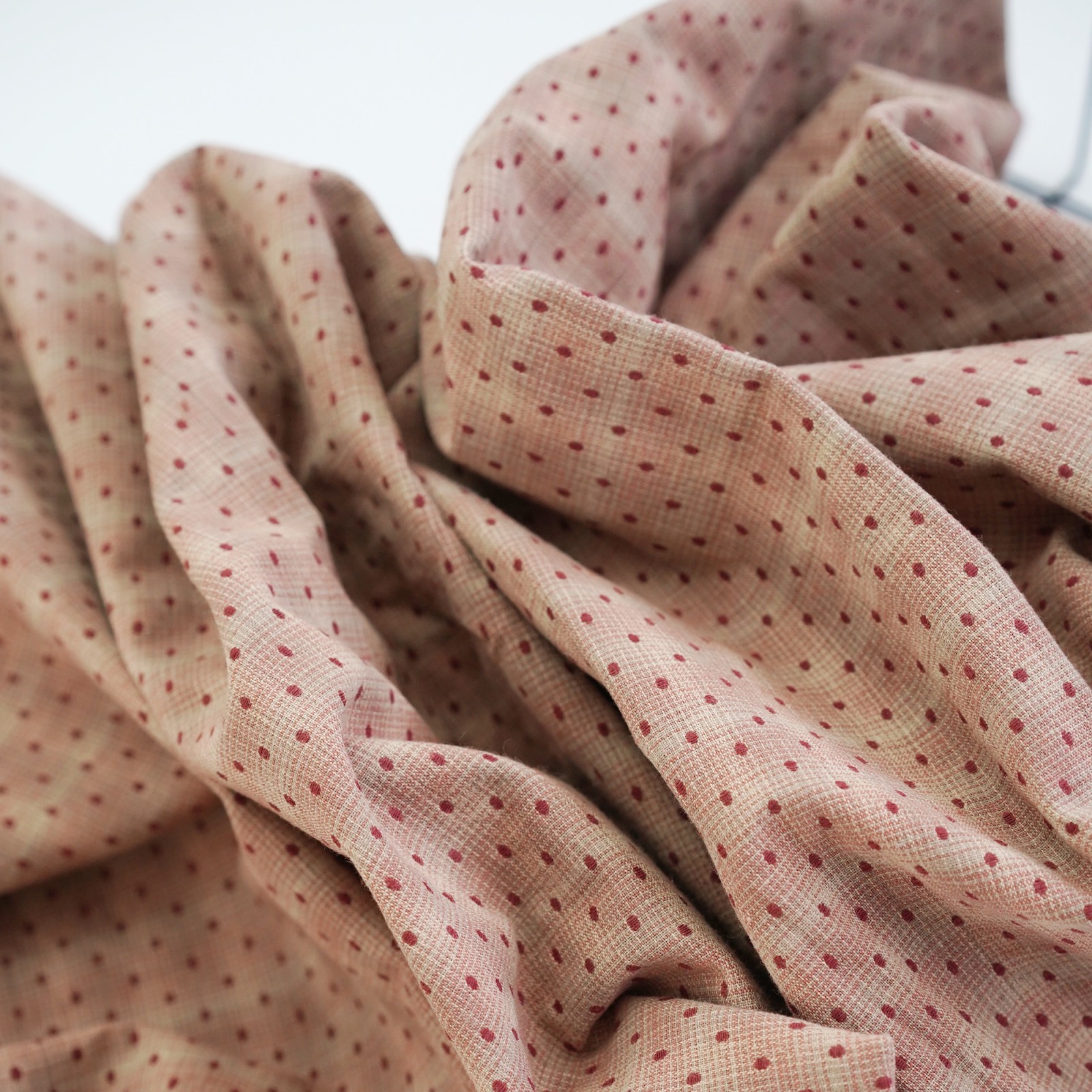 Фактурный хлопок премиум винтажный горошек. Цвет - пудово красный
