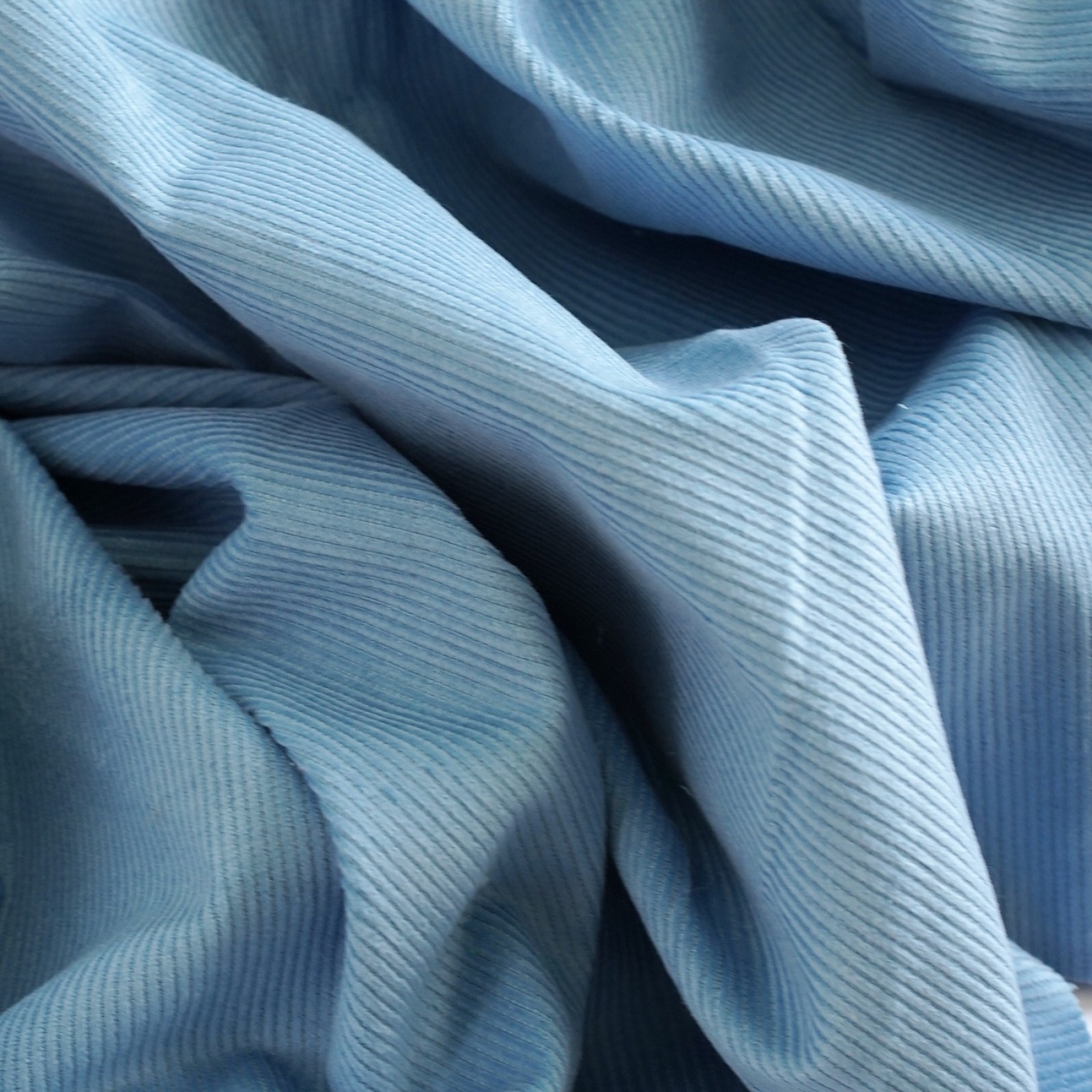 Ткань вельвет - это мягкая и плюшевая ткань, выполненная с использованием специальной технологии, при которой короткие ворсинки плотно располагаются на поверхности материала, создавая бархатистый эффект в рубчик. Ширина рубчика около 2 мм