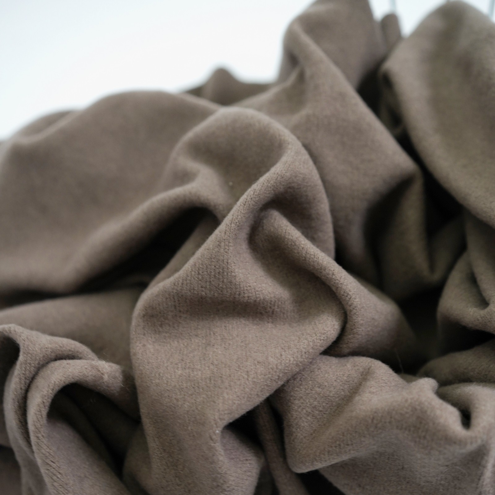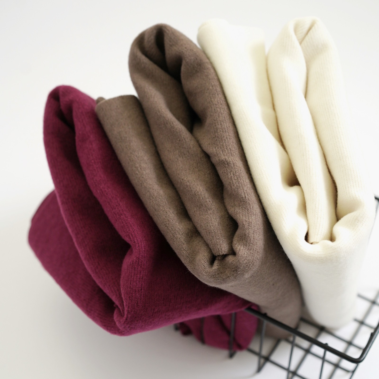 Трикотаж с начесом представляет собой очень мягкое и эластичное полотно. Начес добавляет приятное тепло и уютное ощущение. Сочетание полиэстера и спандекса в составе ткани обеспечивает ей высокие эксплуатационные характеристики. Трикотаж отличается прочностью, эластичностью и устойчивостью к износу. А вискоза в составе добавляет ткани мягкость.