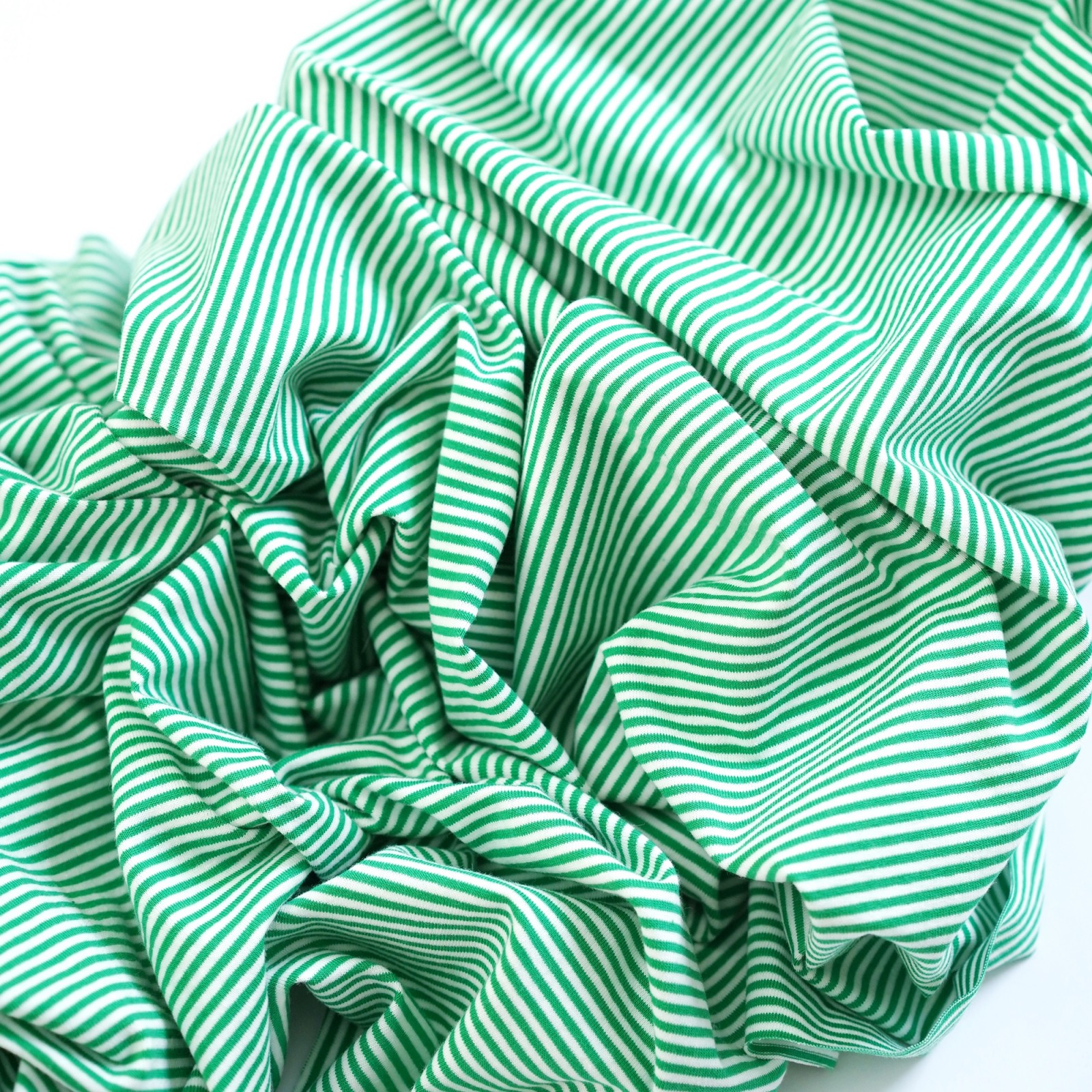 Трикотаж полоска 2 мм. Цвет зелёно-белый