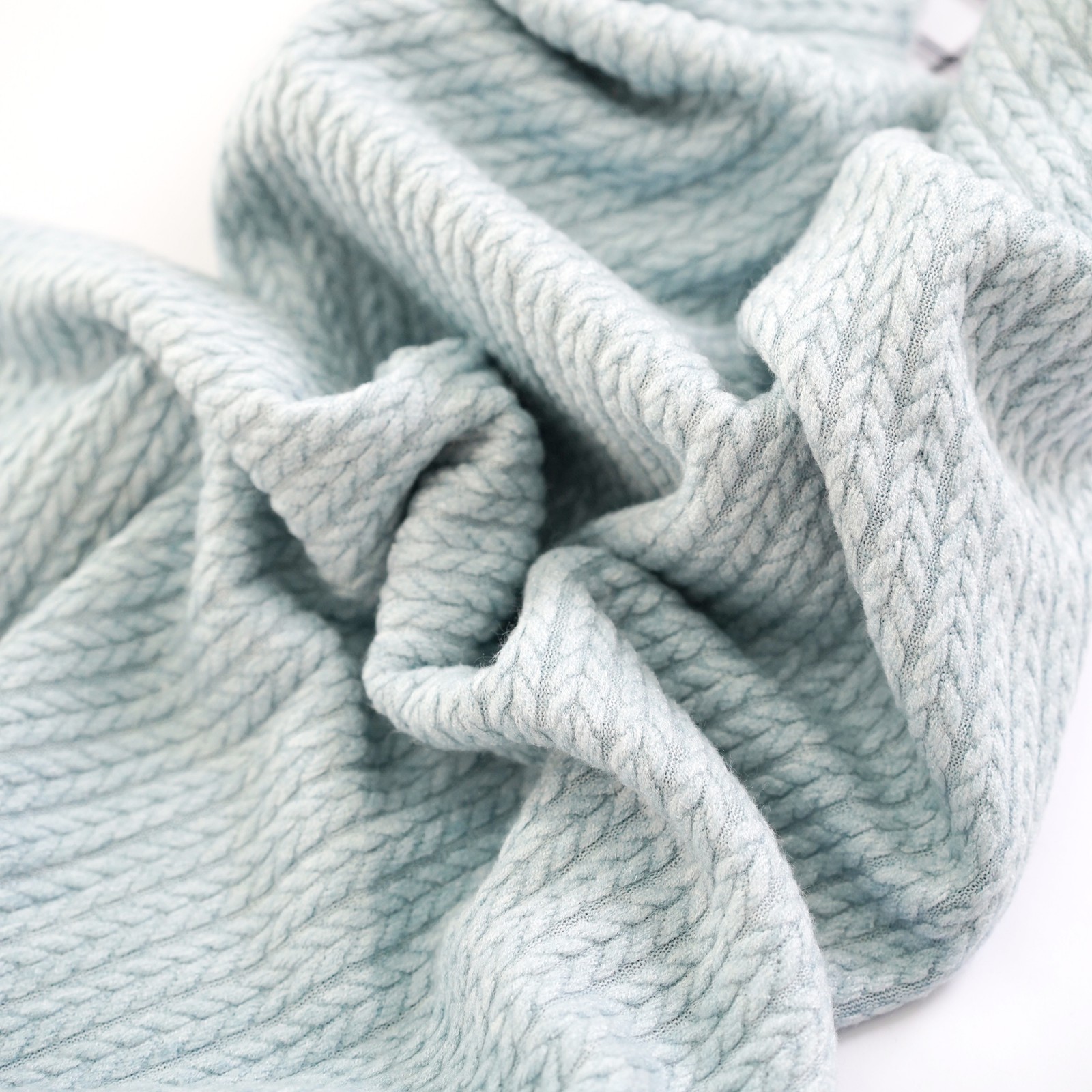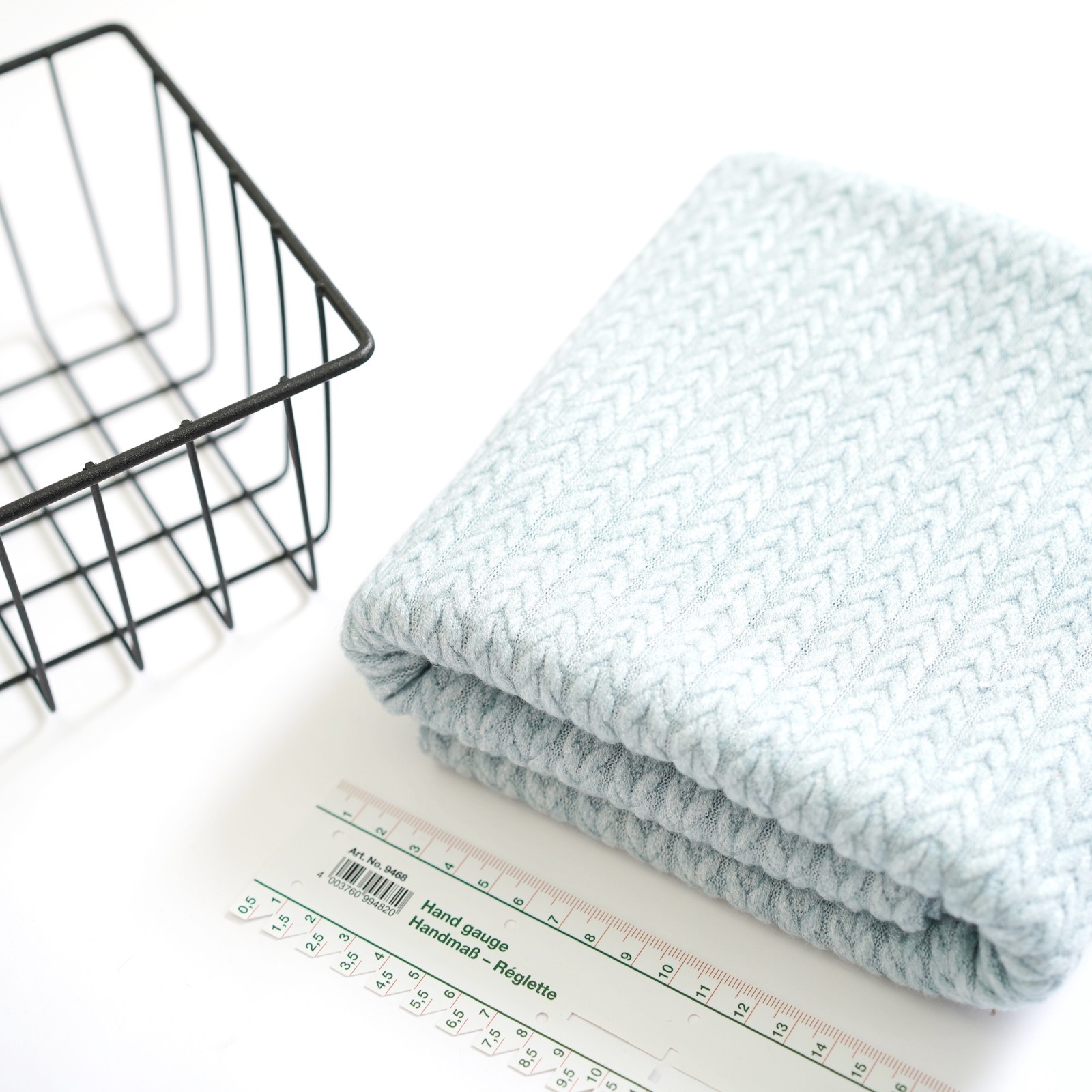 Невероятно стильный и фактурный трикотажный жаккард, в котором по всему полотну чередуется через каждые 3 мм уникальный вязаный узор в 1 см - косичка. Этот удивительный материал отличается великолепными эксплуатационными характеристиками и необычайной выразительностью фактуры.