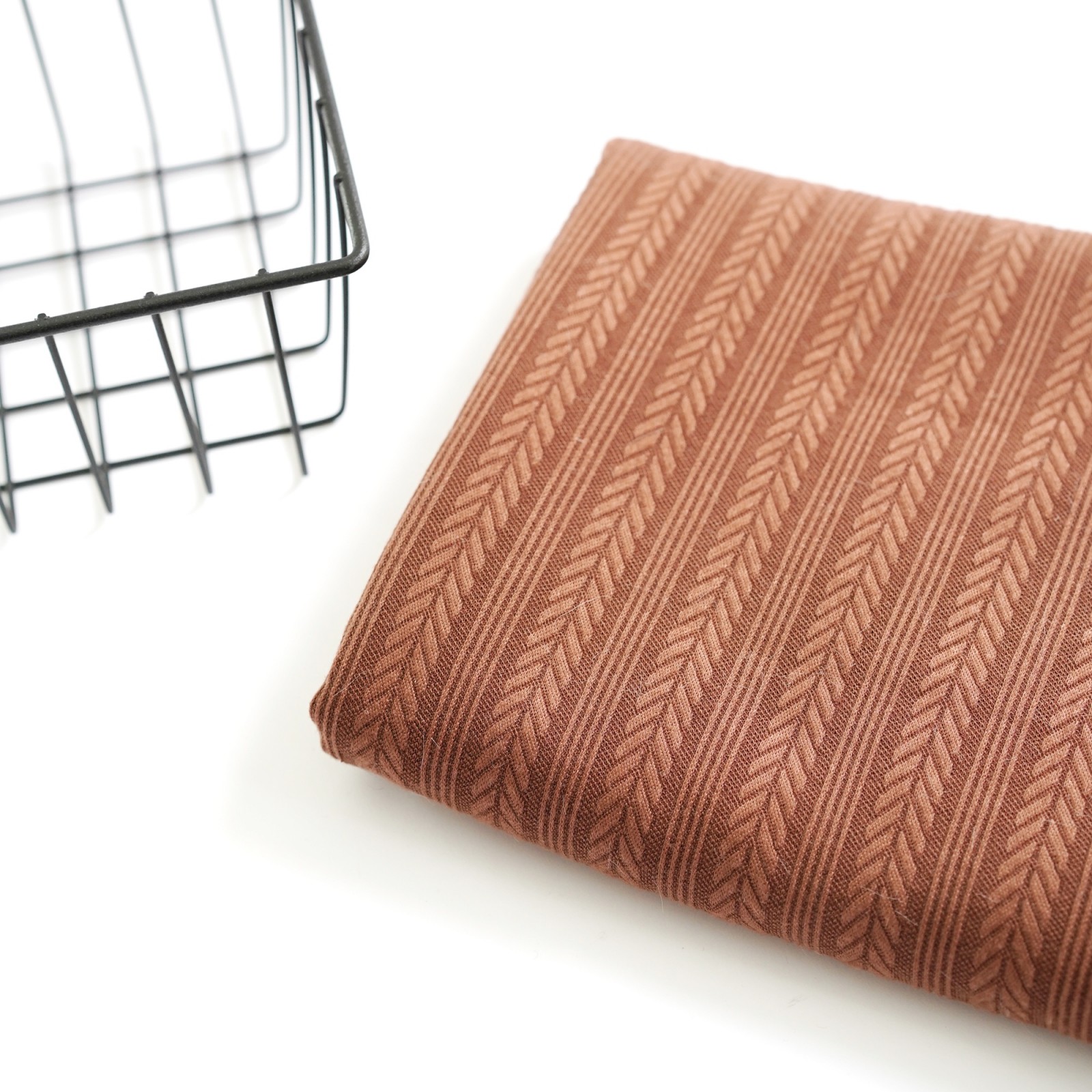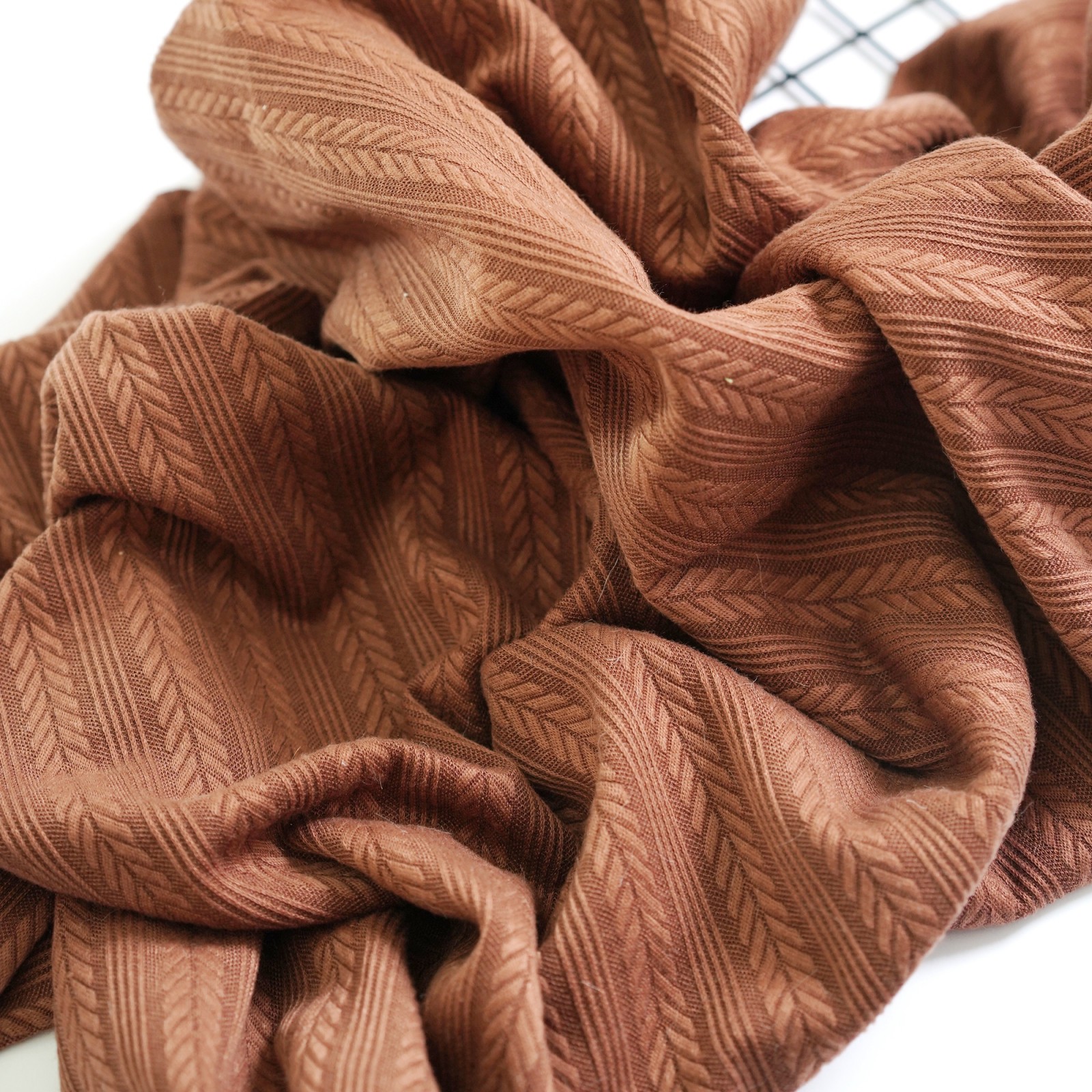 Невероятно стильный и фактурный трикотажный жаккард, в котором по всему полотну чередуется через каждые 4 тоненькие полоски жаккардовый узор - косичка в 12 мм. Этот удивительный материал отличается великолепными эксплуатационными характеристиками и необычайной выразительностью фактуры.