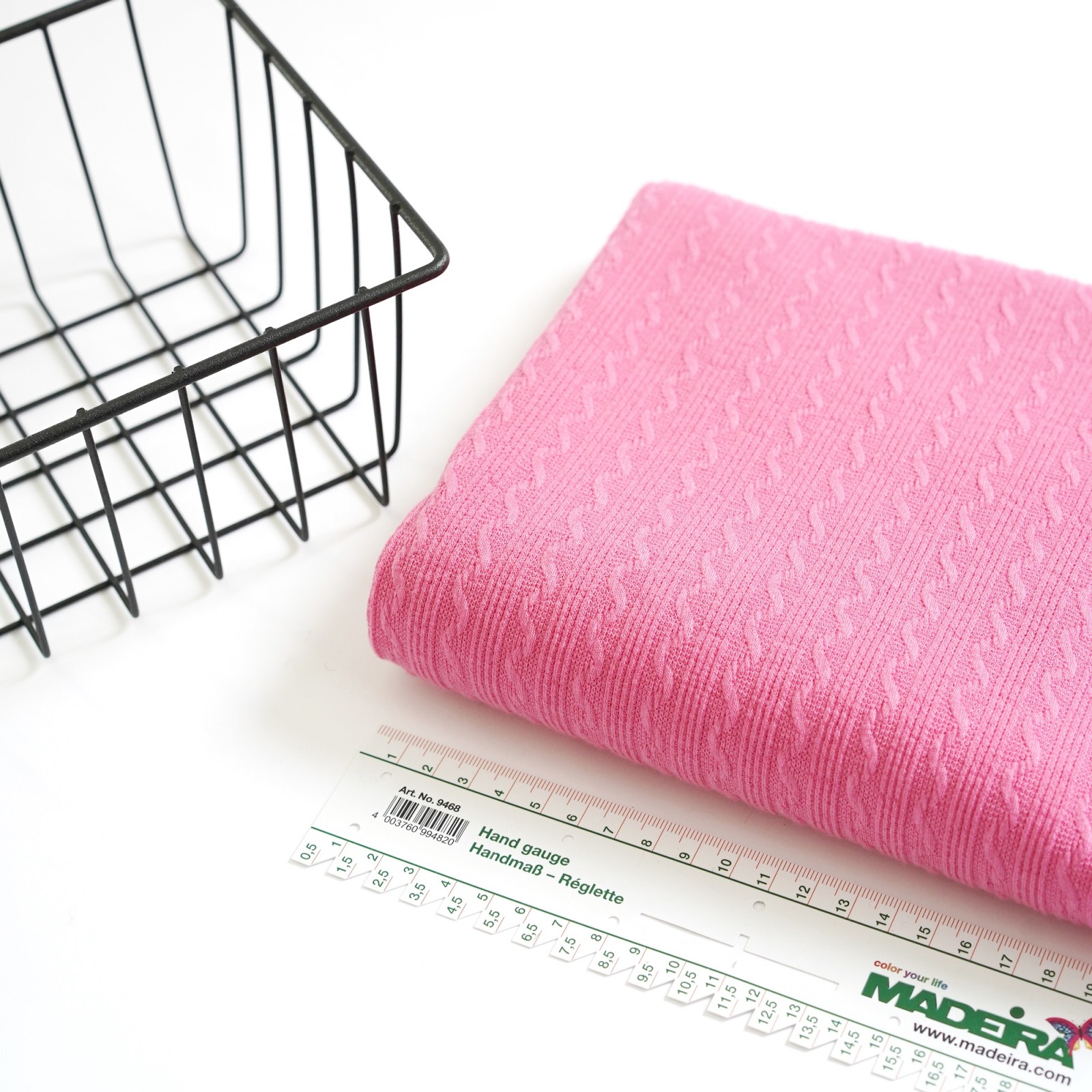Невероятно стильный и фактурный трикотажный жаккард, в котором по всему полотну чередуется через каждые 4 тоненькие полоски жаккардовый узор - косичка в 12 мм. Этот удивительный материал отличается великолепными эксплуатационными характеристиками и необычайной выразительностью фактуры.