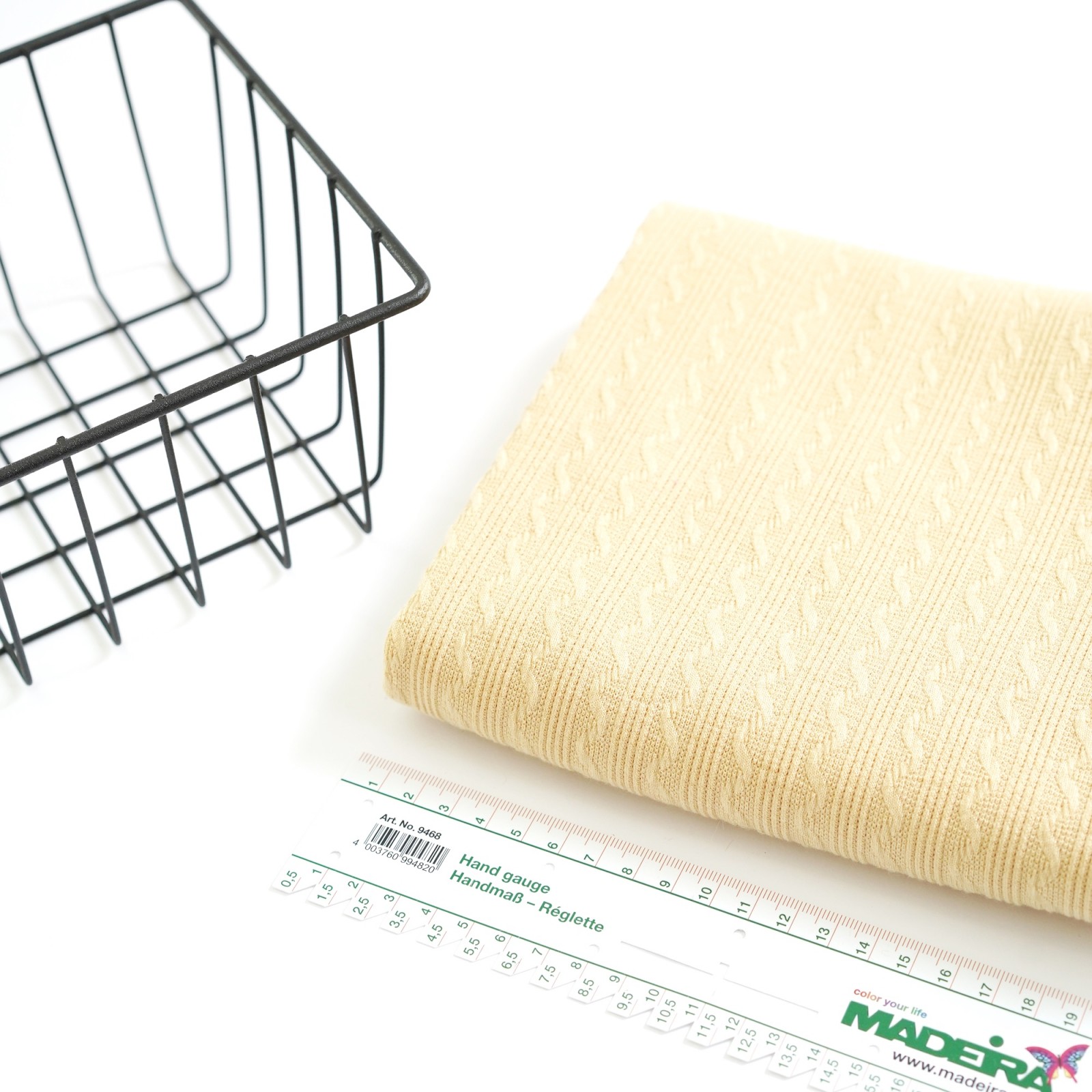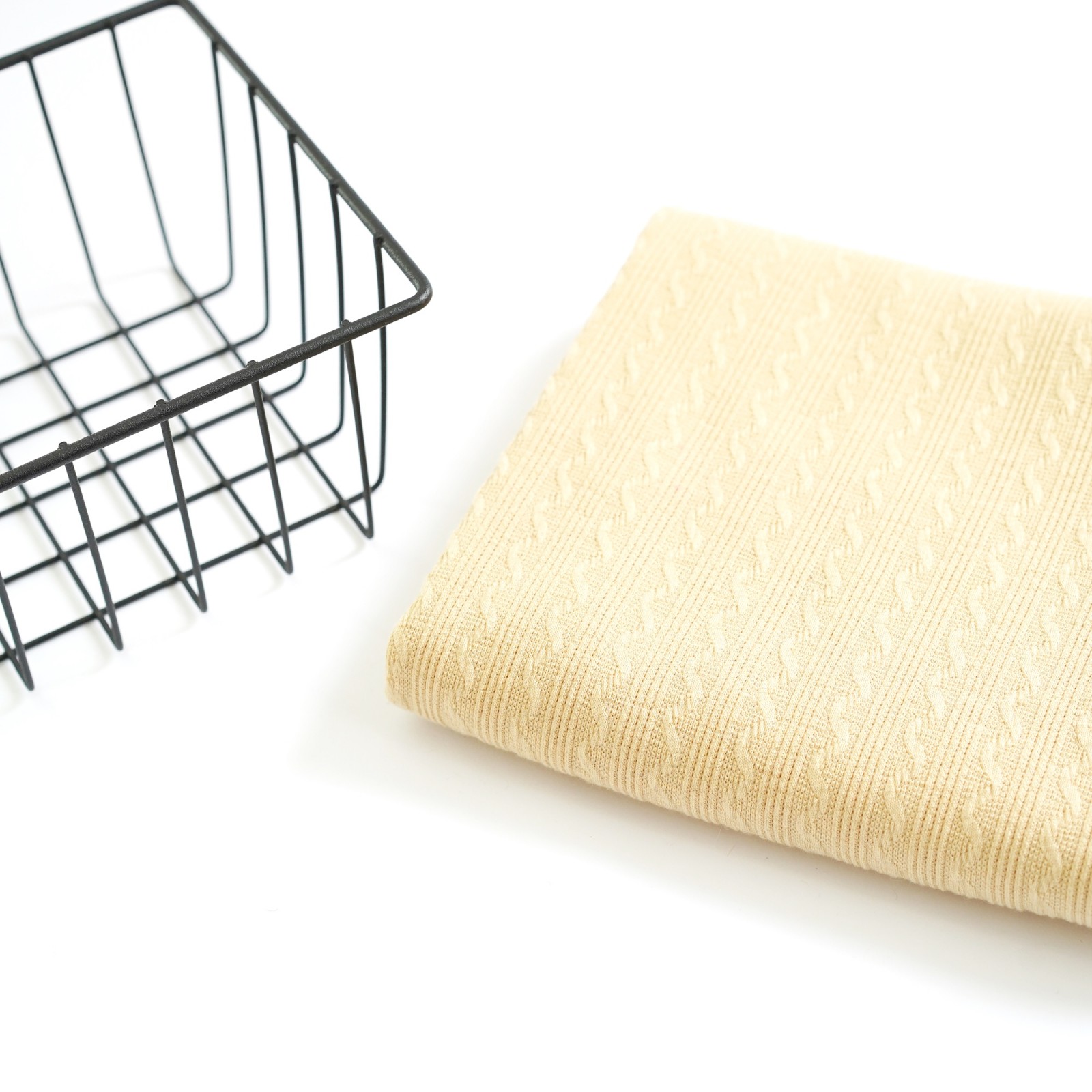 Невероятно стильный и фактурный трикотажный жаккард, в котором по всему полотну чередуется через каждые 4 тоненькие полоски жаккардовый узор - косичка в 12 мм. Этот удивительный материал отличается великолепными эксплуатационными характеристиками и необычайной выразительностью фактуры.